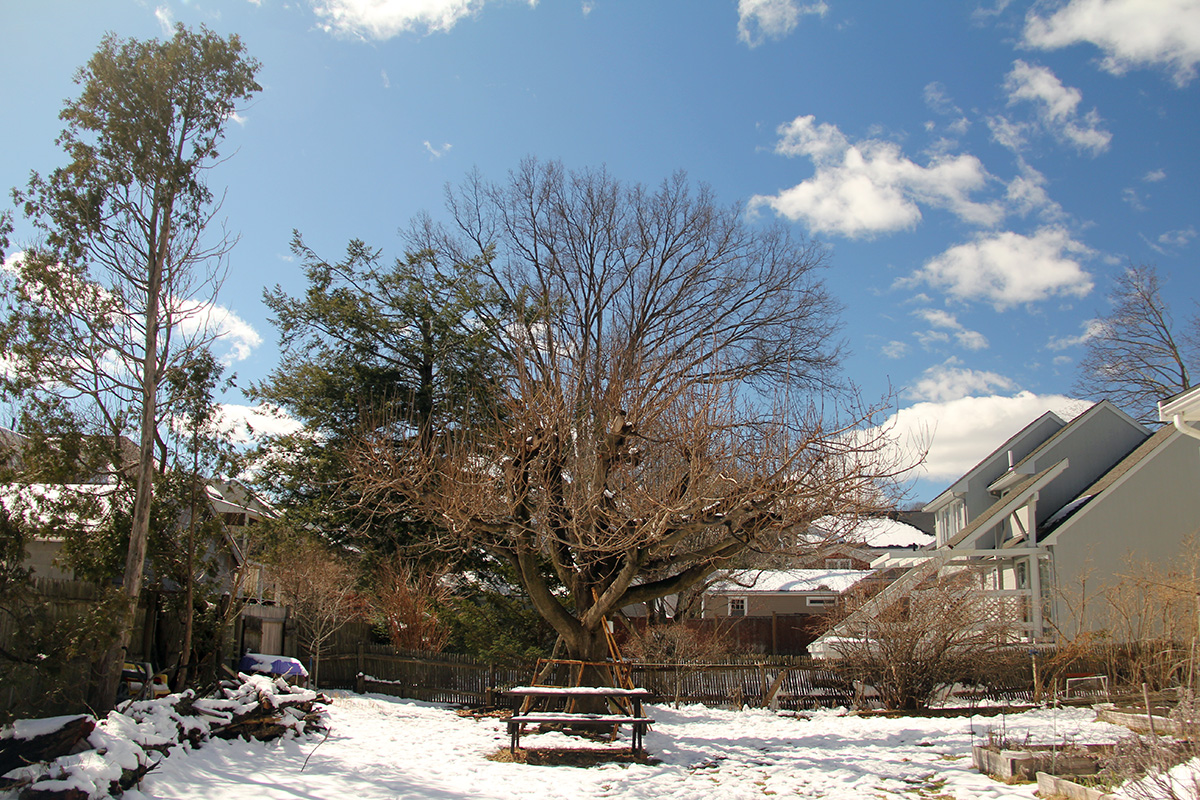 it was my sister who first noticed that the tall neighboring pine tree seen from our backyard had snapped in half. i of course was happy because that meant less obstruction and more sun for our panels. the biggest tree obstruction however is a gigantic oak, perhaps the largest tree within many blocks. the fact that nothing's ever happened to that tree before is a testament to its strength/health. i'd imagine should even one branch break off, it'd damage a lot of neighboring properties.
