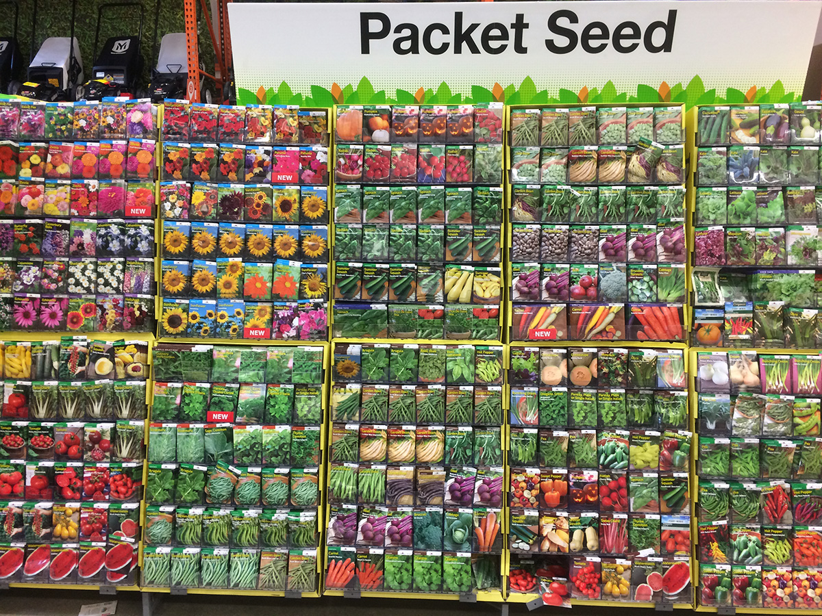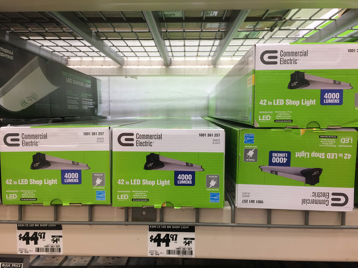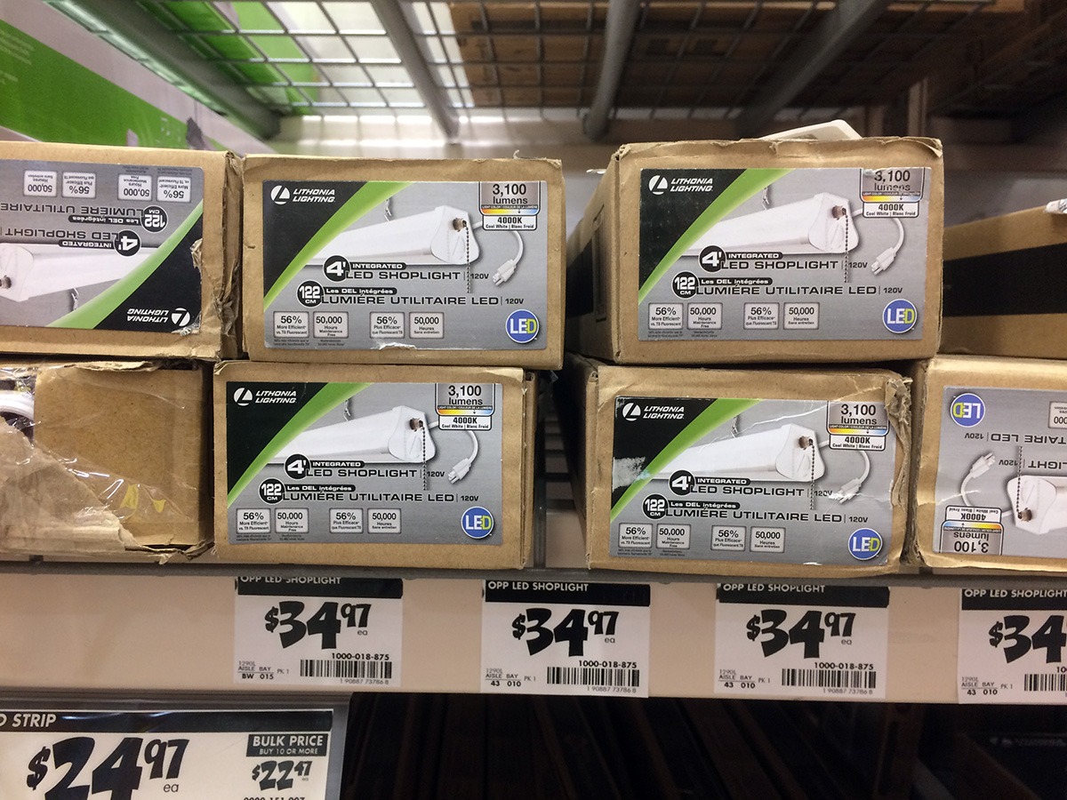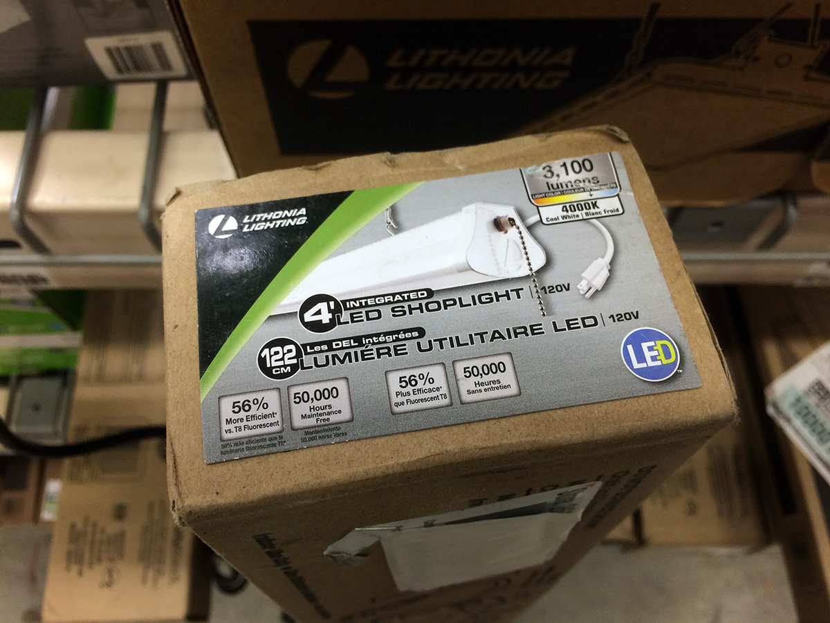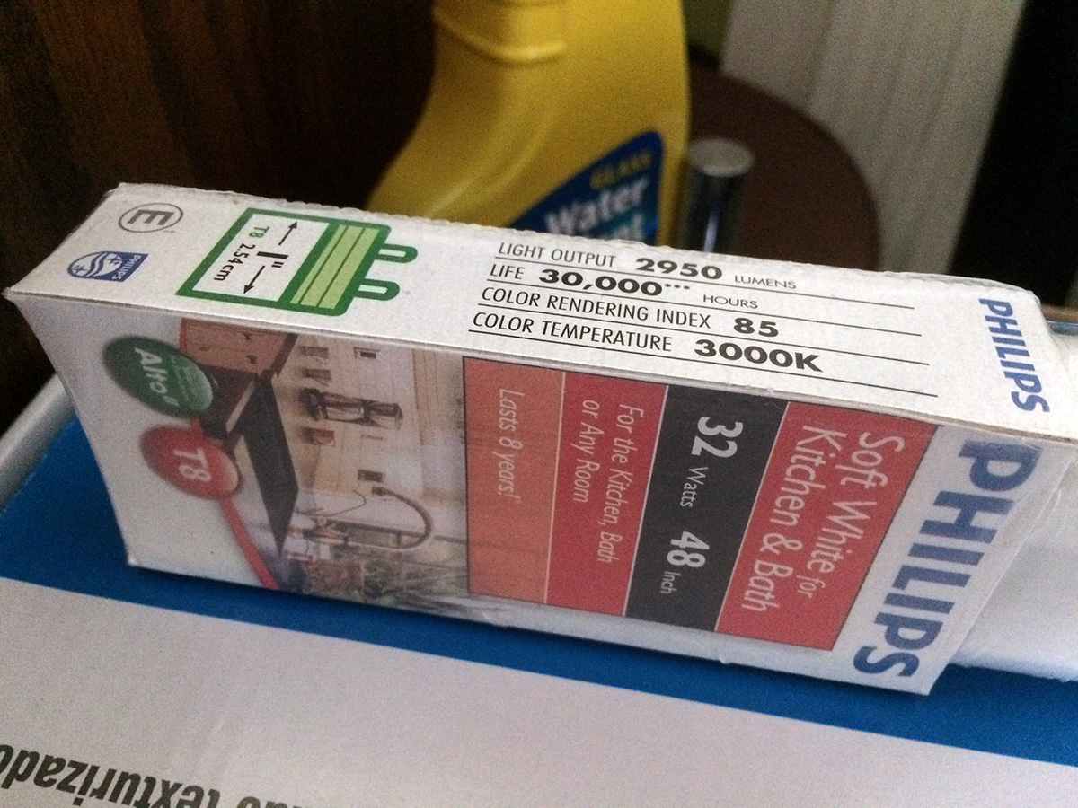 i went to home depot to pick up another T8 fluorescent shop light and to see if they had any japanese eggplant seeds (if not then i'll need to order them online). the T8 shoplight i wanted was actually kind of hard to find, as the store seems to be pushing the more expensive (though more efficient) LED lights. i actually had to log into their website, look up the light i wanted, and have it tell me where it was located in the store. it was actually where i was looking, just sort of hidden (a few boxes on the lowest shelf), and it wasn't on display either. along with the shoplight, i picked up a pair of warm white (3000K) T8 fluorescent tubes. i then checked out their seeds: a more extensive selection than OSJL, but still didn't carry the japanese eggplant variety i wanted. i did pick up a packet of blue columbines though.