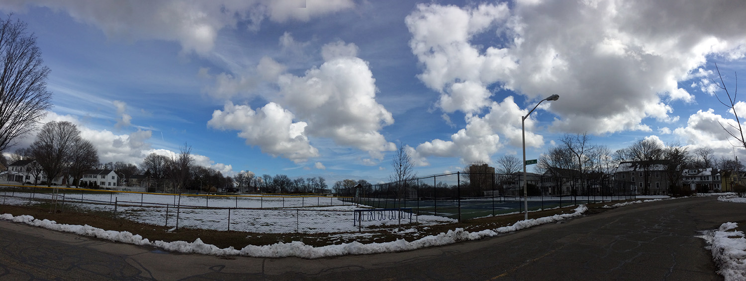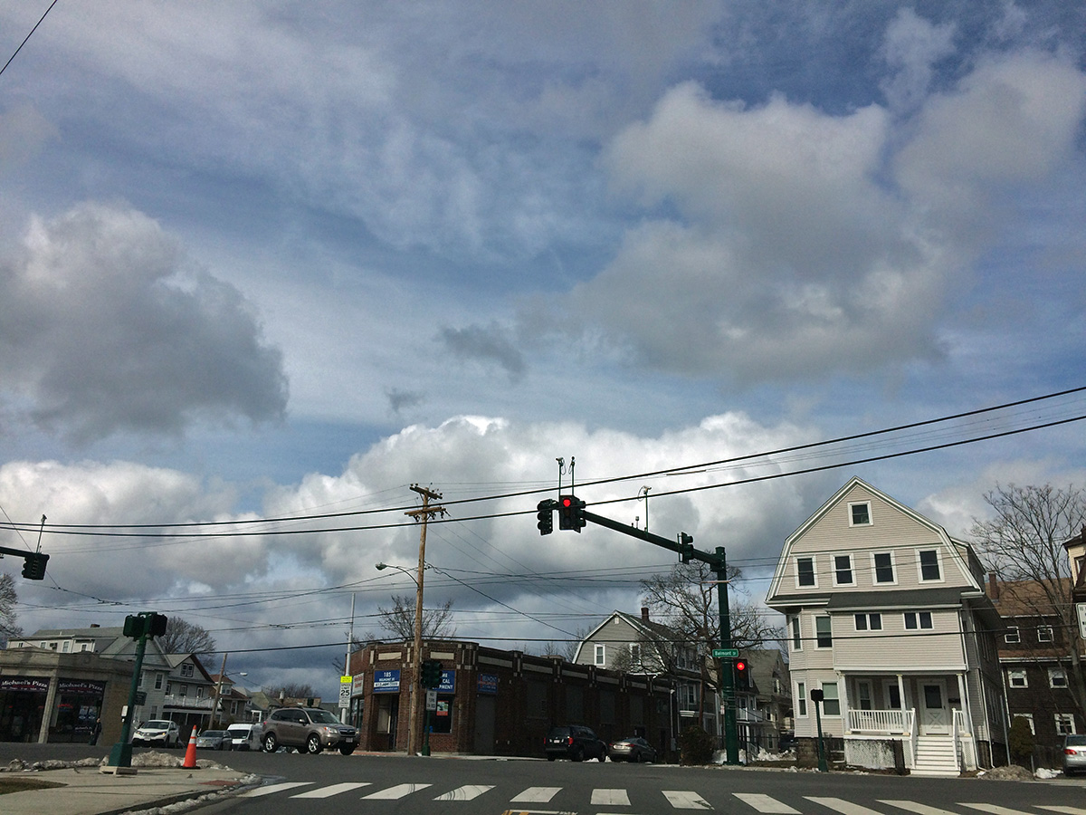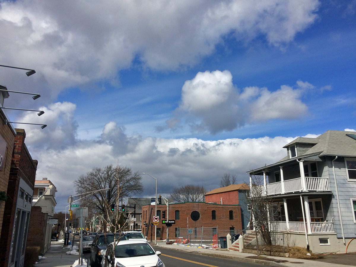 the sky was already a riot of different clouds, especially cumulus, which i don't remember often seeing during winter. something big was coming and we're just specks.