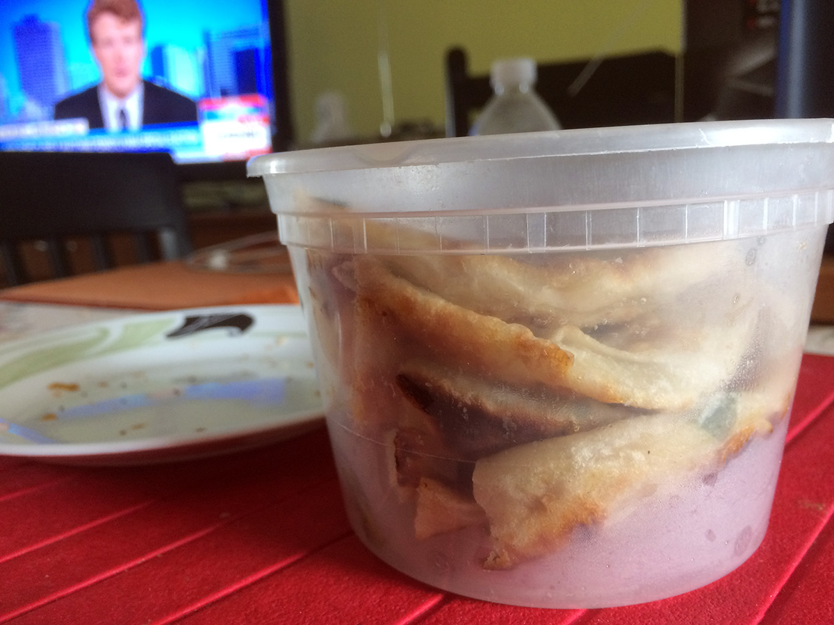 returning to belmont, i finally had breakfast/lunch around 2:30pm, eating the leftover ham & cheese croissant and a bagel nugget. my 2nd aunt also gave me some scallion pancakes which i ate a few slices while i watched MSNBC.