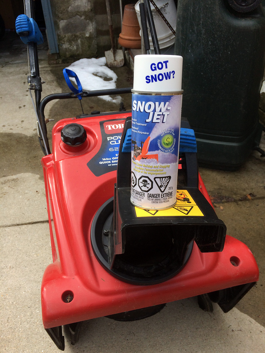 and then went to my sister's place and rolled out the snowblower so i could spray some snow-jet non-stick polymer coating to the chute. this was something my father was supposed to do at the beginning of the season. of course we didn't have very much snow until these past two weeks, so there wasn't an urgency. and it also depends on the snow: dry snow is no problem, but the wet snow we had last week was hell on the blower. snow-jet requires two coats (drying in between) but hopefully one will suffice.