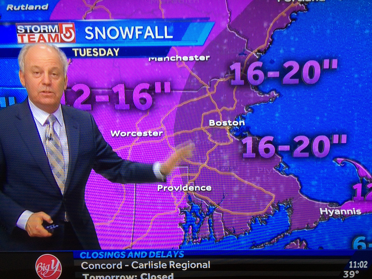 the worst part of all of this is the long range forecast calls for yet another nor'easter - the fourth'easter - scheduled for early next week. the snow total kept on climbing every few hours that i watched the news. the 6pm broadcast said 10-15", but the 11pm broadcast said 16-20". the peak of the storm will be from 5am to 3pm. the only good news is this will be a drier snow, which is easier to clean versus wet sticky snow.