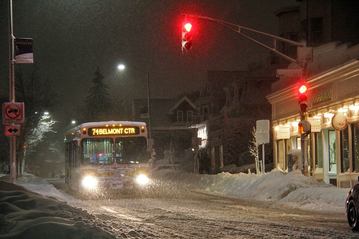 when i got to belmont i had to walk in the streets because not all the sidewalks had been shoveled yet. i was pretty anxious, looking back several times to make sure now plow truck was behind me. along the way i some a few houses were people were digging out. it was actually quiet beautiful and quiet, but as i still had a job to do, i didn't have time to stop and admire the scenery.