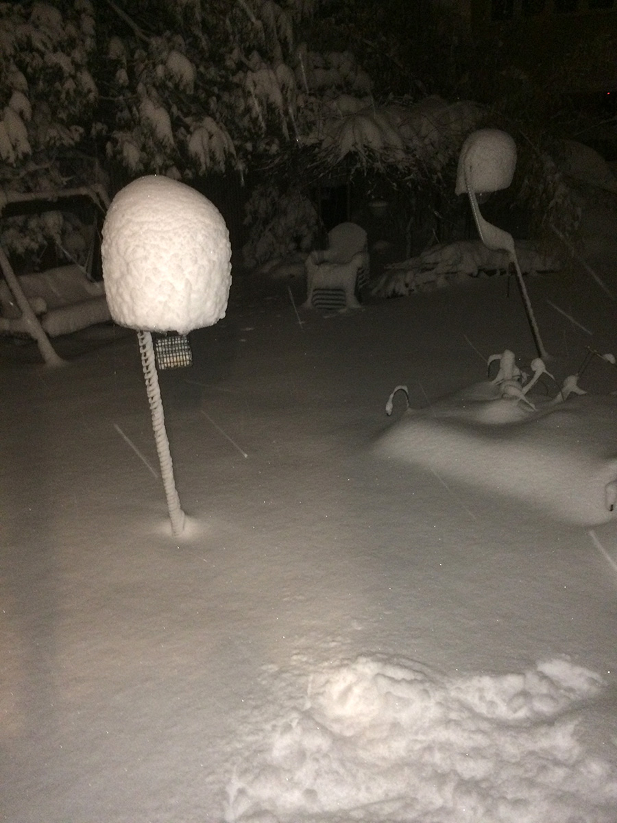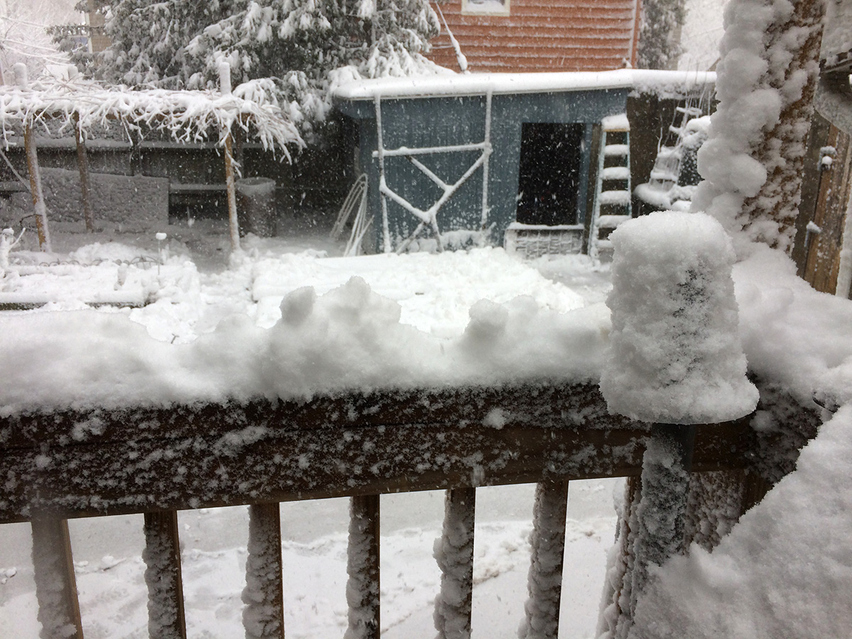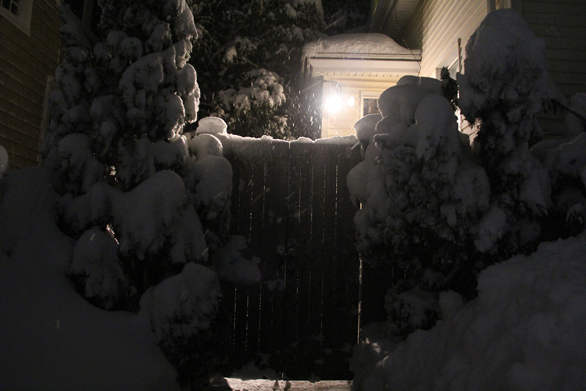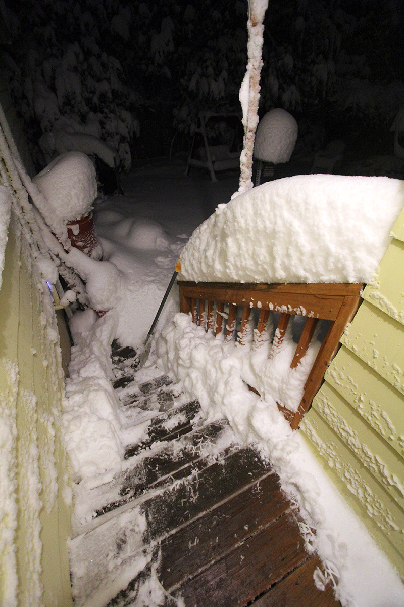 when i got to my parents' place, i had to dig out a trench with my boots over the plow-created snow bank, then walk in snow that was nearly knee deep to get to the front door. i spent the next 1-1/2 hours digging out, first the walkway, then the sidewalk, and finally a path to the trash bins as there was trash pickup scheduled for tomorrow. i also went into the backyard and cleared the steps. i finally finished by 10:30pm.