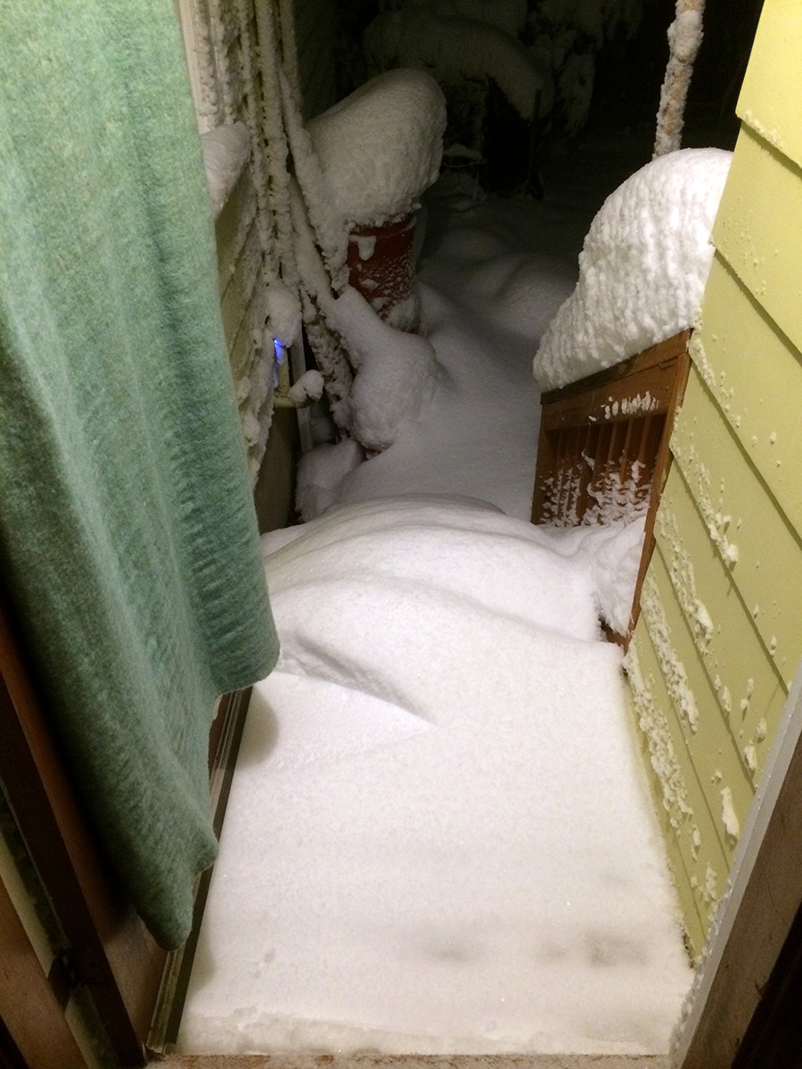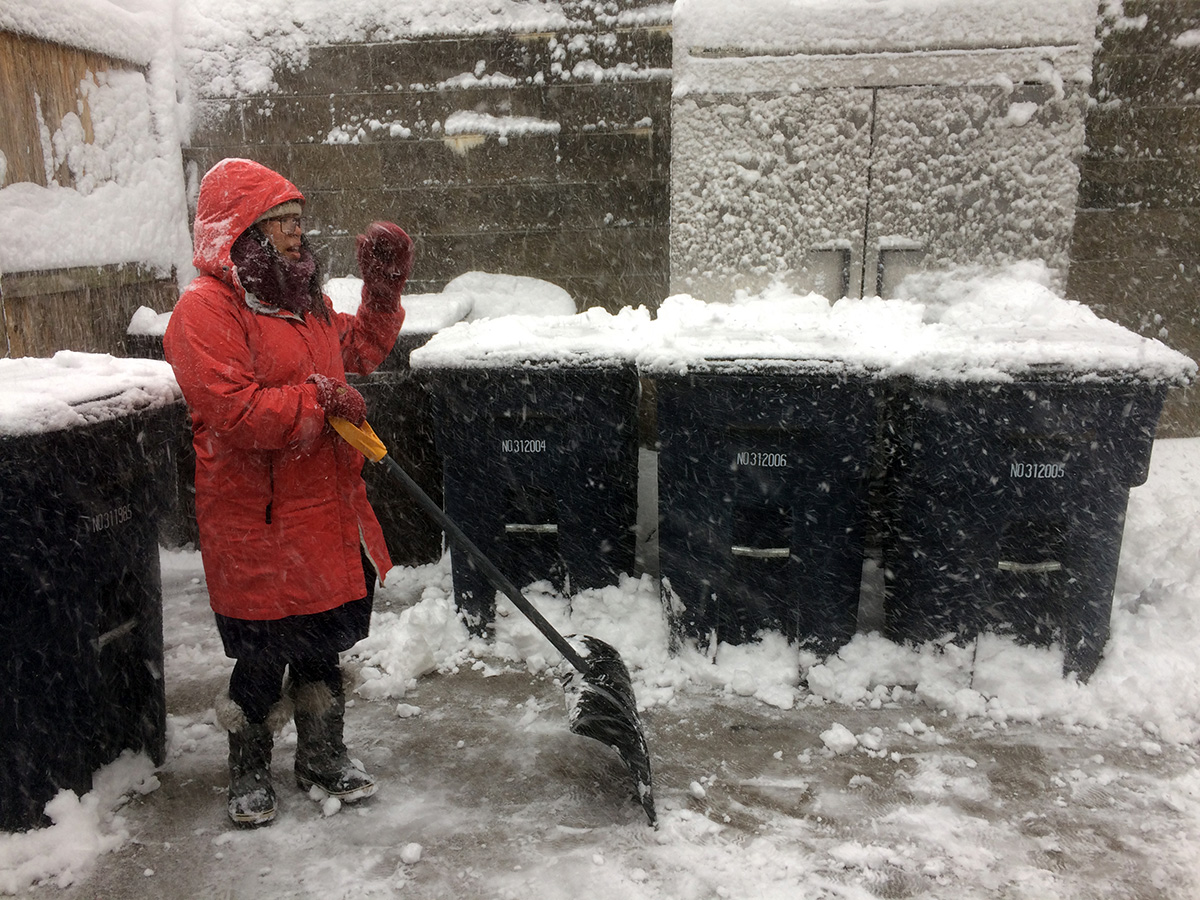 i woke up at 8am to get ready to walk down to the cafe by 9am to begin a day of snow shoveling. there was already a few inches of snow on the ground but thankfully not enough to make walking difficult. however, title="korean instant ramen cup for dinner">