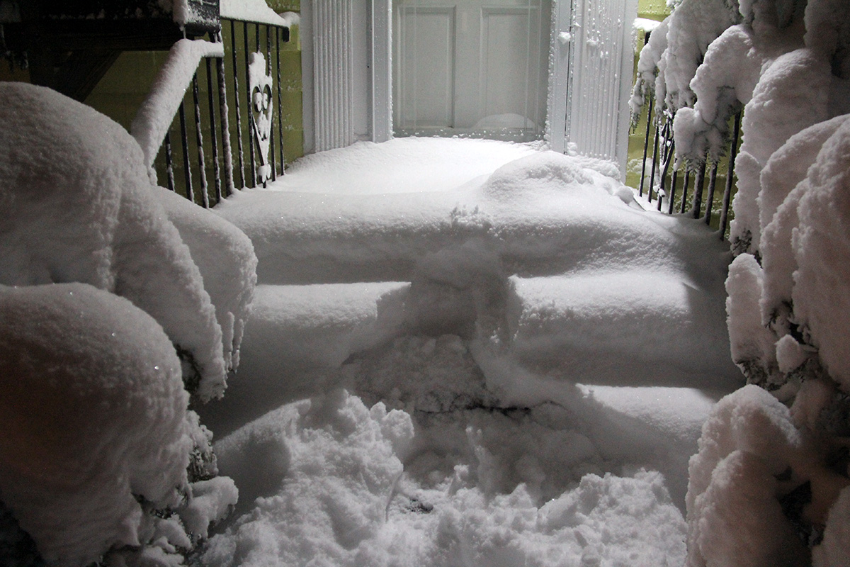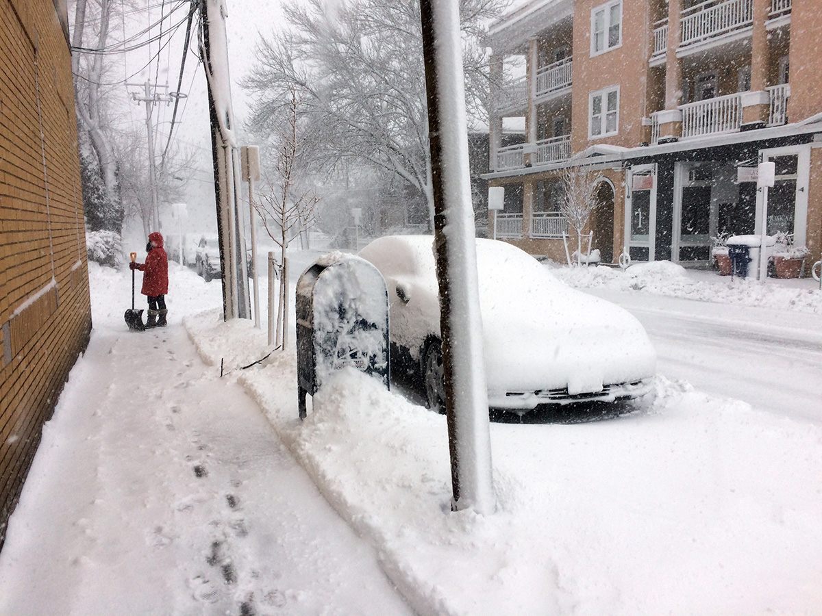 a big part of snow shoveling is waiting. waiting for the snow to end so you can go out and start cleaning. but there's particular challenges when it comes to big snowstorms that last for an entire day. you have to shovel in stages, otherwise if you wait until the very end, there will simply be too much snow to handle. you have to time it so that there's enough snow to shovel but not too much that it'd bog you down. it's also a little demoralizing to see the sidewalk you just shoveled get covered up in snow just as soon as you finish.