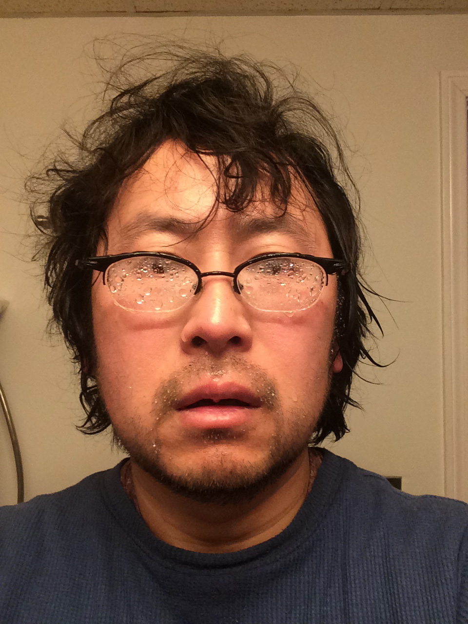 after i finally finished shoveling for the day, i stripped out of my wet clothes and went to take a shower. i knew it wouldn't be a pleasant experience, because i'm turned down the water heater after my parents went on vacation, and it was too much of a hassle to turn it back on again. the water was set to 90°F, lower than body temperature. it was liking showering in cold water in a cold room. i've experienced worse (taking a high elevation ice bath shower in a trucker's rest stop bathroom in western sichuan), but this was not the desired reward after a hard day's work. i noticed if i stood directly in the center of the water stream it felt a little lukewarm, but everywhere else it was freezing cold. i was so relieved to finally finishing my shower and toweling dry.