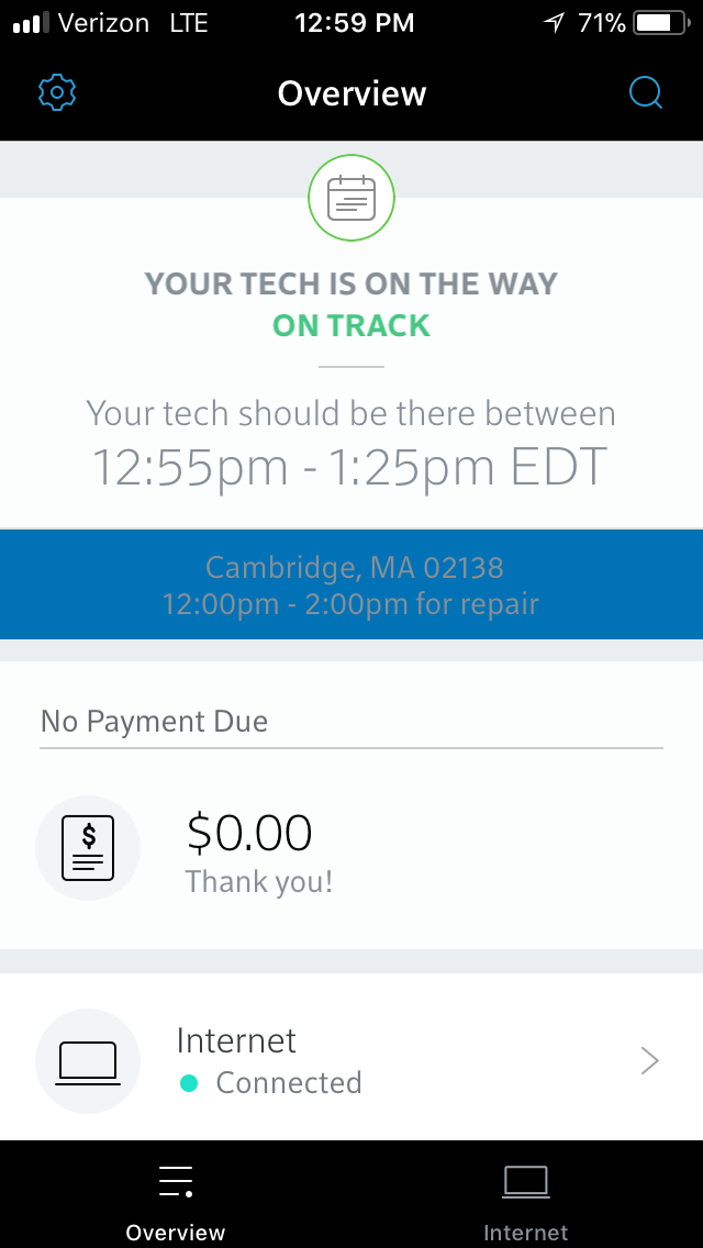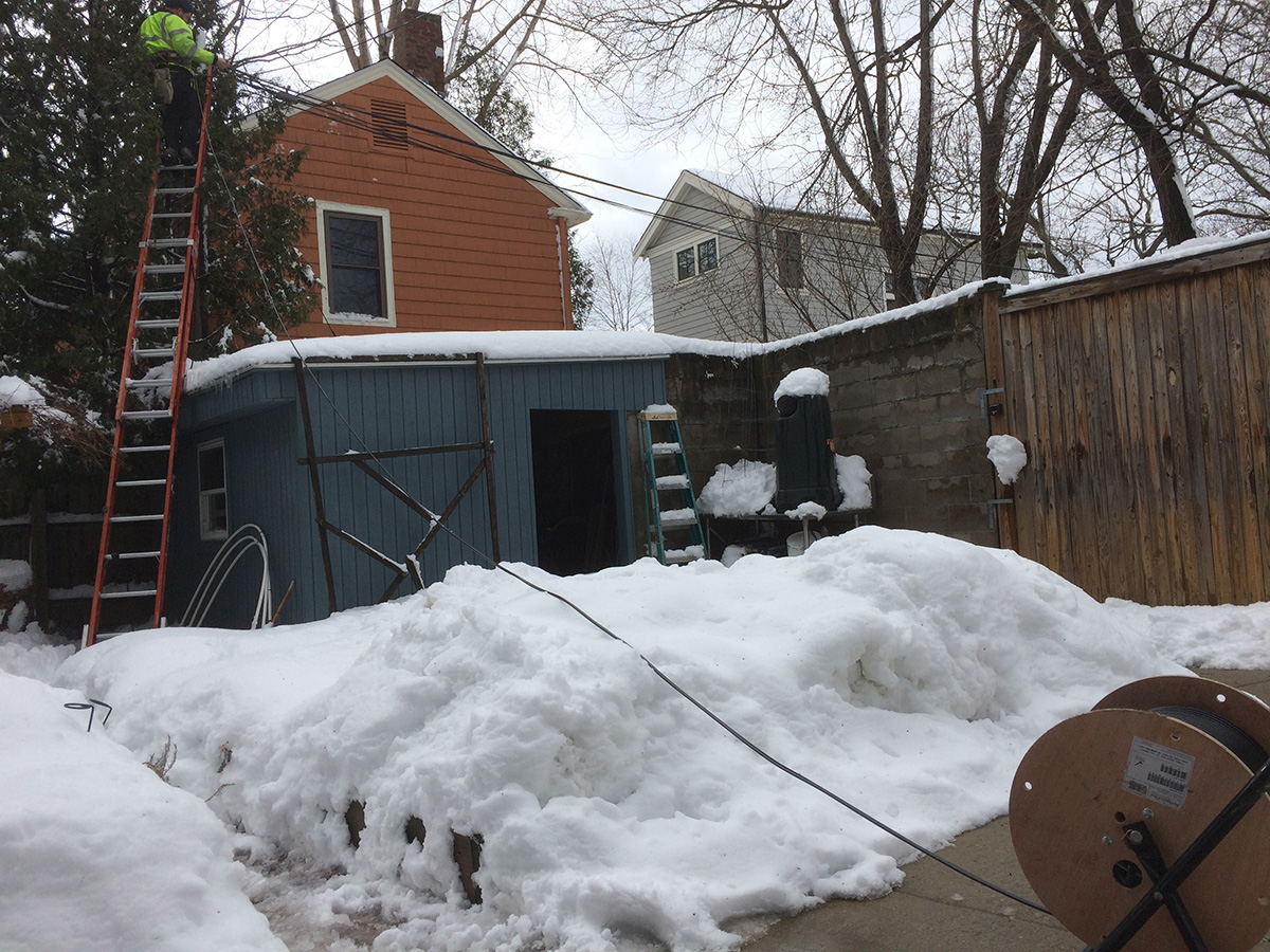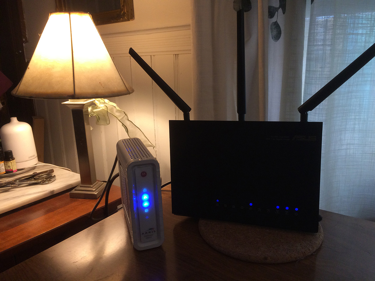 the comcast technician showed up around 1:15pm. i saw the van pulled up in front of the house and i went outside to greet him, just in case he tried calling the wrong number. after checking the coaxial cable for signal strength (weak), he replaced the line. the utility pole was in an awkward spot, wedged between several properties, hidden in an evergreen tree. i showed a path so he could get in with his ladder. he climbed up and replaced the coaxial. he told me that squirrels had chewed through the cable. it might've worked if it had time to dry out, but water had gotten inside, which was causing the weak signal strength. besides the cable, he also replaced the splitter. once that was done, i went inside to check the cablemodem and saw it was working again, all the proper lights were on. it took a few more minutes for the router to fire up to see that wifi was working too. i called my sister to let her know she could come back to the house.