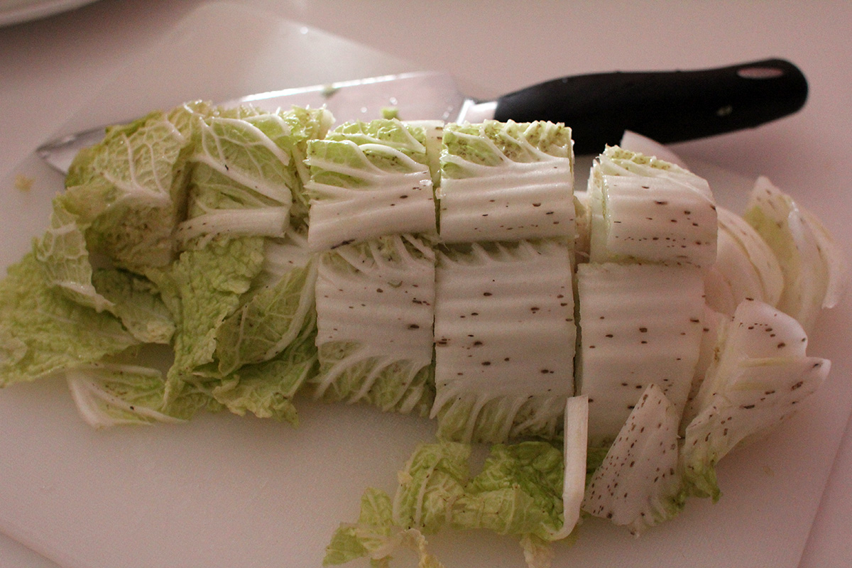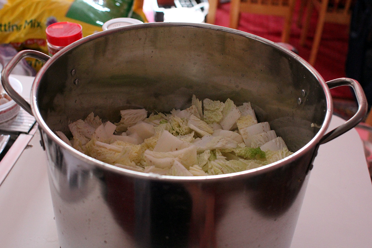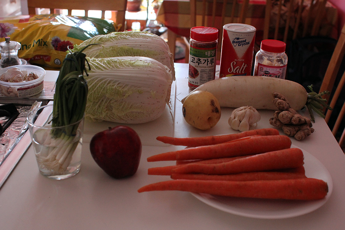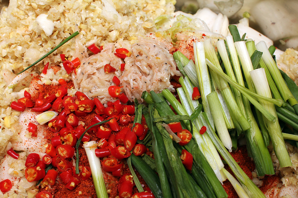 6.83 lbs. napa cabbage 2.16 lbs. daikon radish 5 tbsp fine salt 2 tbsp salted shrimp paste 12 tbsp red pepper powder |