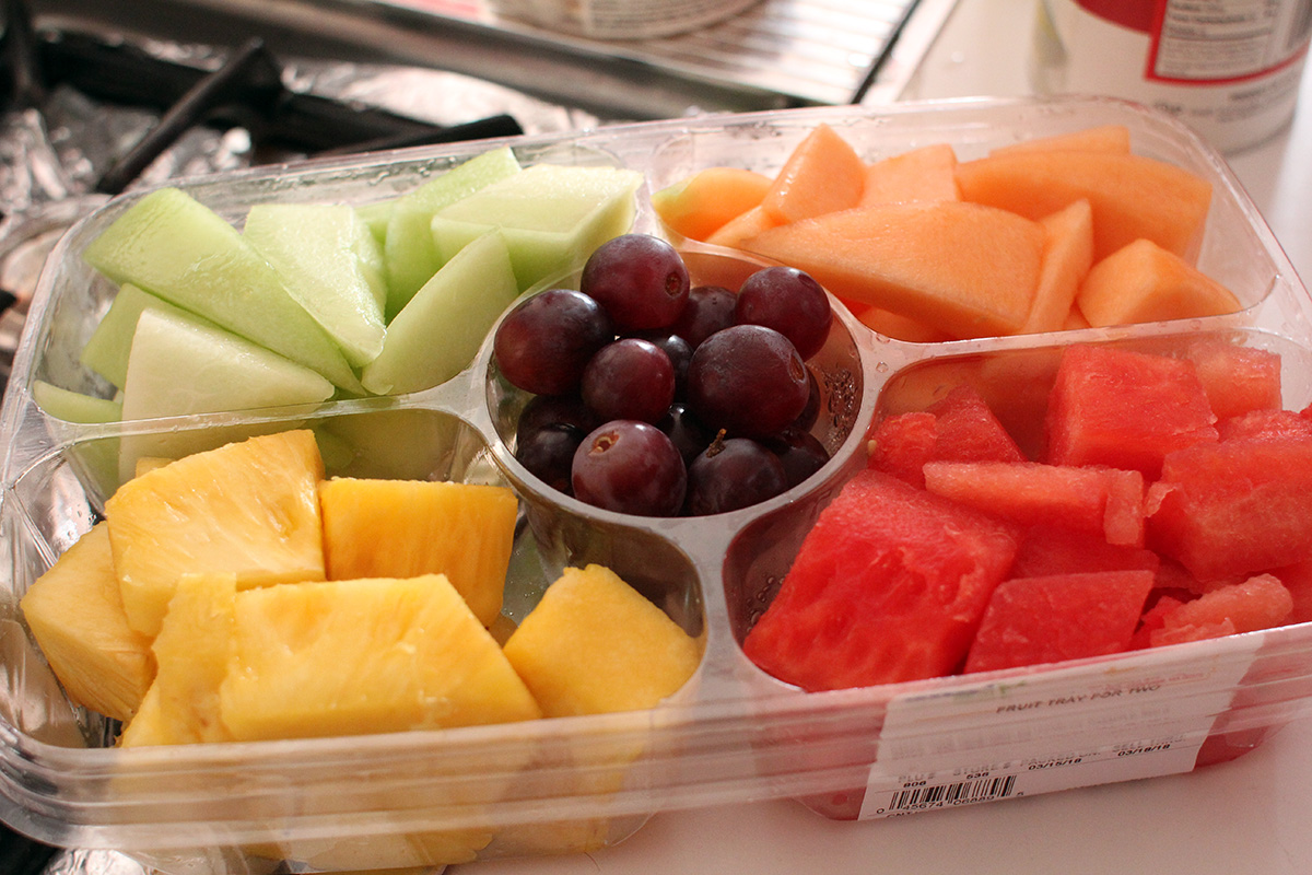 back at home i got started on my korean kimchi, since it takes a few hours for the vegetables to reduce. i briefly went to star market to get some garlic and a fruit tray i'd eyed hungrily the last time i was there.