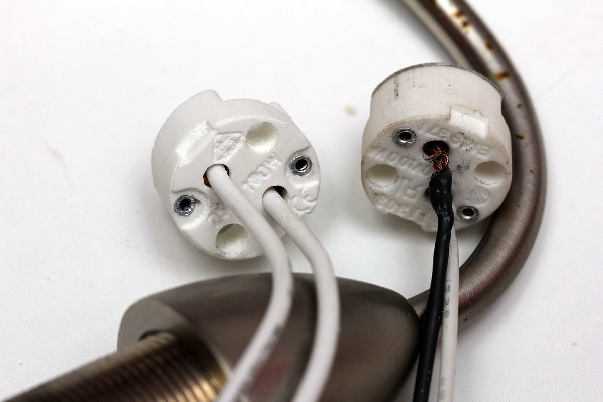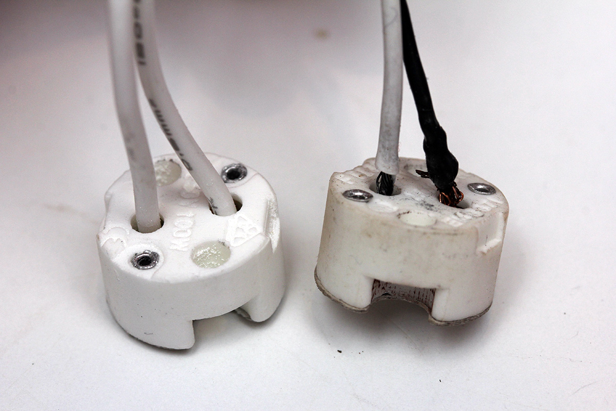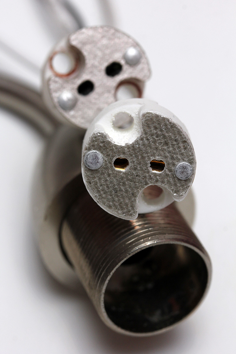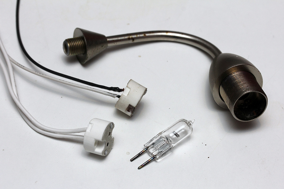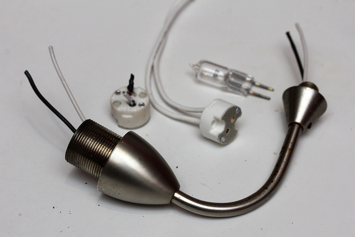 with the arrival of the replacement mini bi-pin socket, i had all the parts i needed to fix the halogen light fixture. the only other thing i was still waiting for was a new halogen bulb, but i could just as easily use the old one, it wouldn't be a problem. the wires that came with the sockets were indeed too short, but they were also too thick, so i'd have to splice the old thinner wires onto these. to seal the splices i'd use heat shrink tubings, but i needed a heat gun to get a proper shrink, so i'm going to wait until tomorrow and get the heat gun from my parents' place.