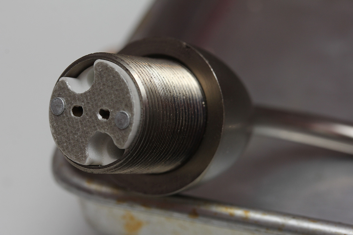 i never really soldered anything and i don't think i did a good job. i was afraid of heating the wires too much because it'd activate the heat shrink tubing at the far end of the wires (which wasn't that far). i ended up doing a chabuduo job, hoping for the best. i then slipped the heat shrink tubing over the spliced points and used the heat gun to heat the tubings. i've never played around with heat shrink tubing before, they're pretty fun. the final result looked okay, better than letting the wires be exposed anyway. i then pressed the socket into place, pulling out the wires at the other end of the metal neck tubing. i was pulling pretty hard which in hindsight was probably a mistake, but the splice points held strong, it didn't tear. there were two rusty screws holding the socket in place but they probably weren't necessary since it was a pretty tight fit to begin with, but i put them back anyway.