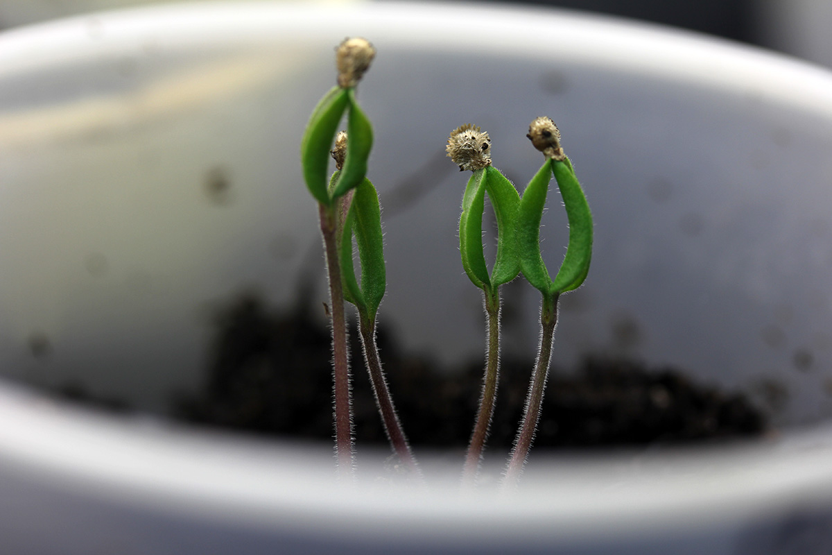 the thai basil finally sprouted today, so those old seeds were still viable after all. i gave my plants 14 hours of fluorescent light a day.