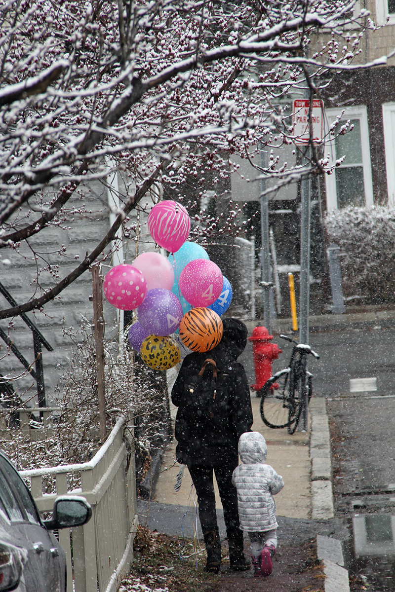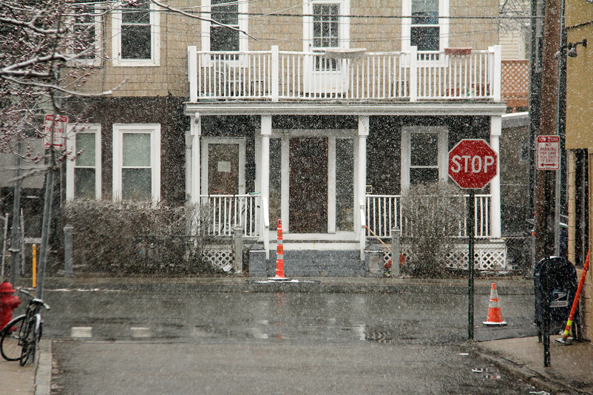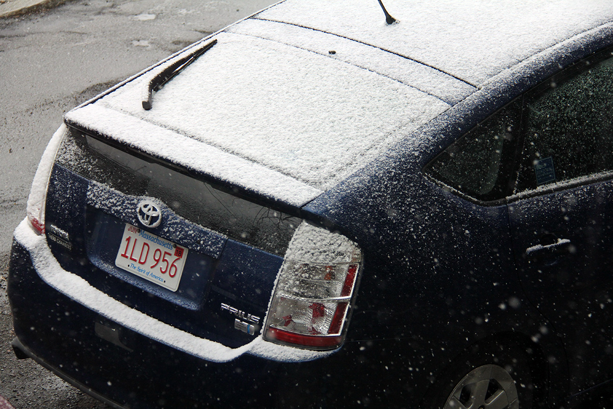 that it was snowing in april didn't worry me as much as it should've. maybe because i was all snowed out after this winter, what does it matter if it snowed just a bit more? or maybe because i knew it wasn't going to amount to much and everything would melt by the afternoon. still, at one point the snow was falling so fast, a part of me was worried. at the very least i'd need to go to belmont and check and see if the solar panels needed cleaning.