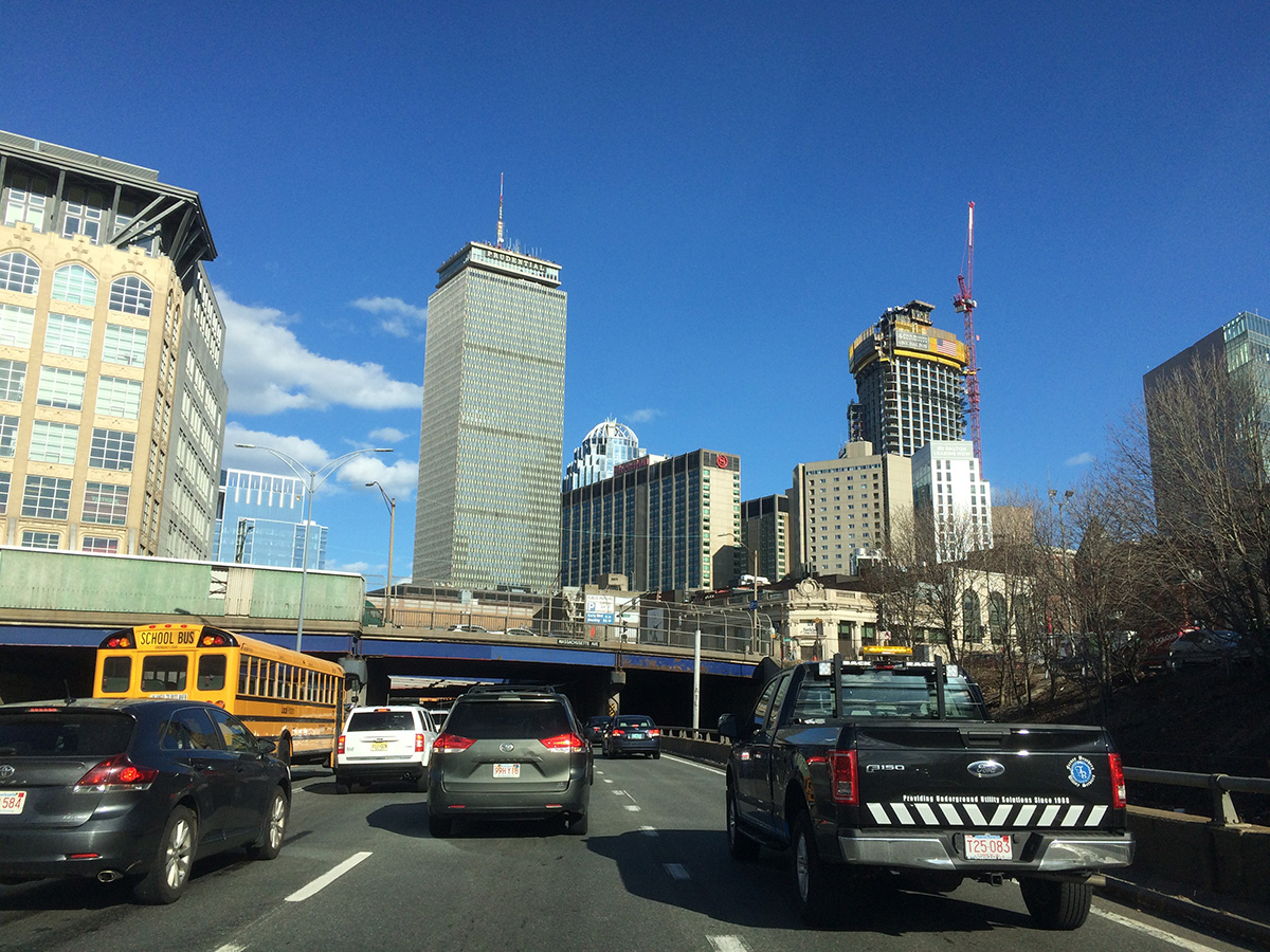 traffic on the turnpike wasn't bad, just increased cars. it was in the underground tunnels that traffic came to a stop. not sure why they didn't think of it when they designed the big dig, but entering traffic merging from the right and then having lanes reduced is a guarantee for daily traffic jams. there was nothing to do but slowly inch forward bumper to bumper, watching texting drivers as cars build up behind them while the lane ahead is empty.