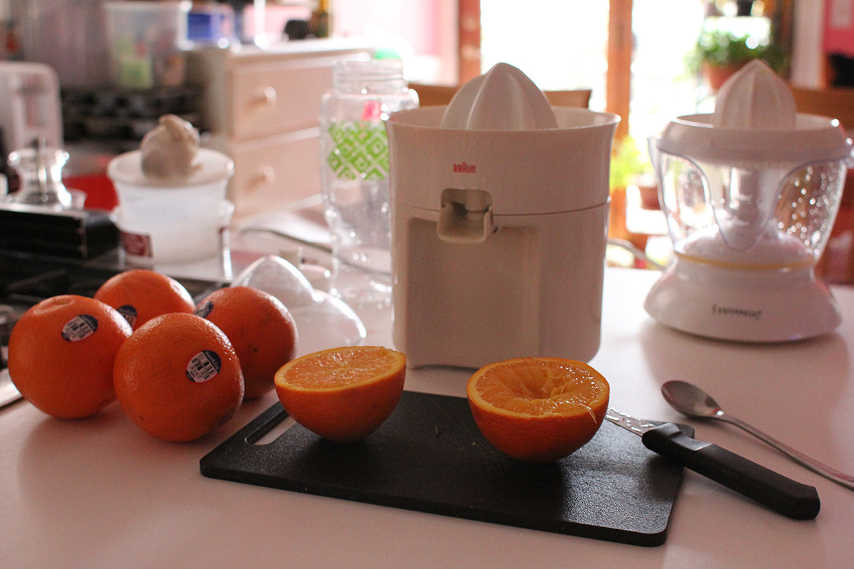this morning i was excited to try the new found citrus juicer. however i soon realized that the slightest amount of downward force on the juicing cone will immediately jam up the motor; apparently there was a reason why somebody would throw it away. that's the risk one takes with street appliances: there are no guarantees it'll work. fortunately it's free but it's kind of a shame, the juicer itself looks brand new. the juicing cone even auto-reverses, so it would've extracted a good amount of juice if it wasn't broken. i ended up going back to my old braun juicer. however for some reason it's now having a little stuck motor problem as well when i apply too much downward pressure, making a horrible grinding sound. but i still managed to squeeze 5 sunkist navel oranges to get half a water bottle's worth of fresh juice. i could buy a new juicer, but these are the sort of appliances that people get rid of soon after they buy it once they lose interest or find out it simply taking up too much space. i'll keep an eye open on craig's list for a good quality used one.