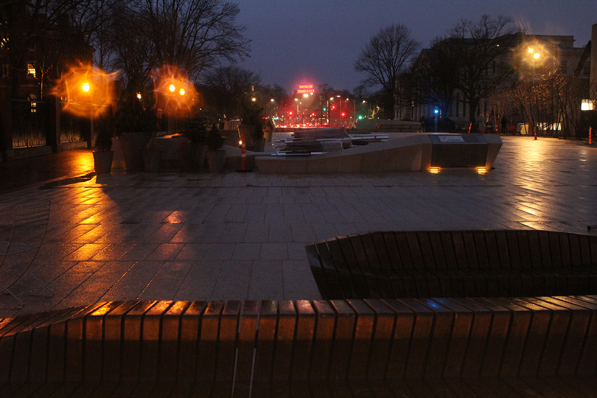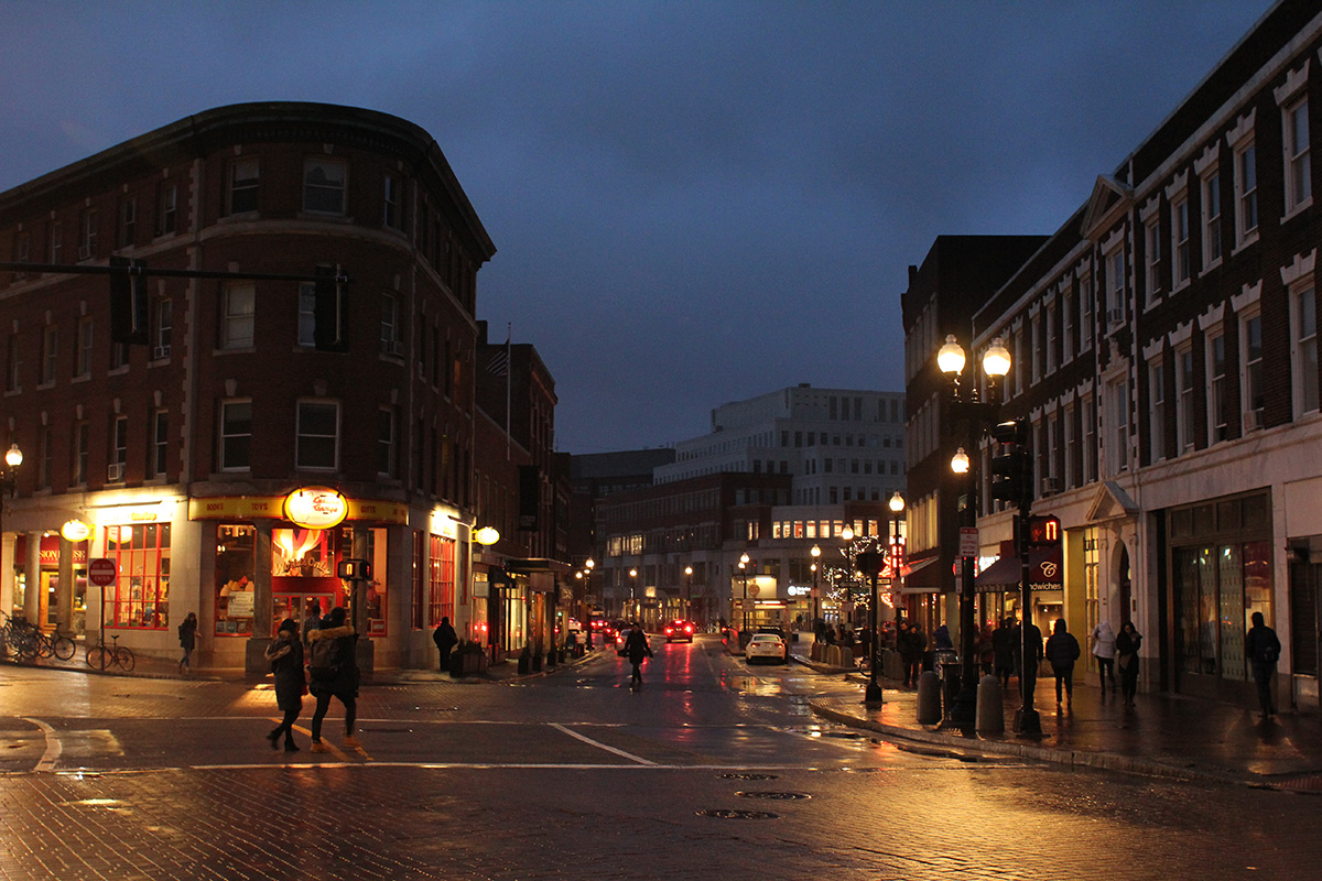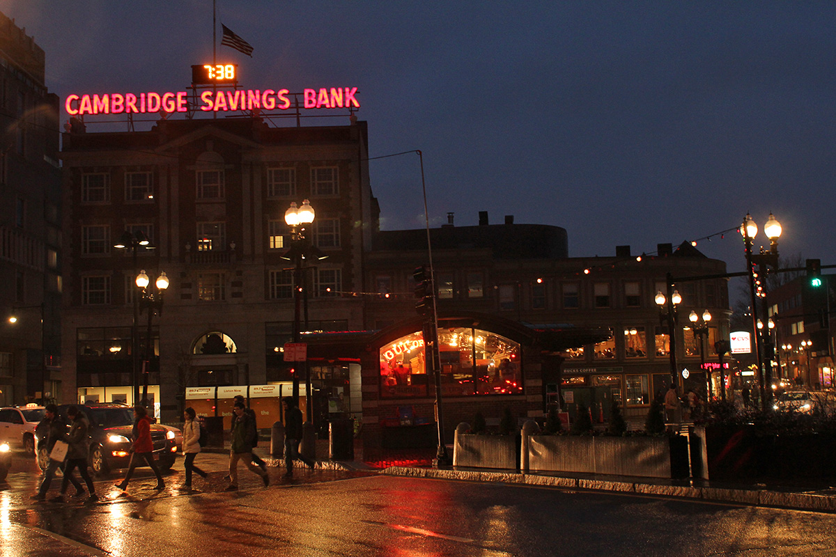 after dinner i took the bus back home to cambridge. it was still cold and still raining. just imagine: the marathon runners tomorrow morning will be running in weather similar to this. rainy nights in the city makes for pretty photos, and i took out my camera mounted with the 28mm f/1.8 lens to take a few snapshots.