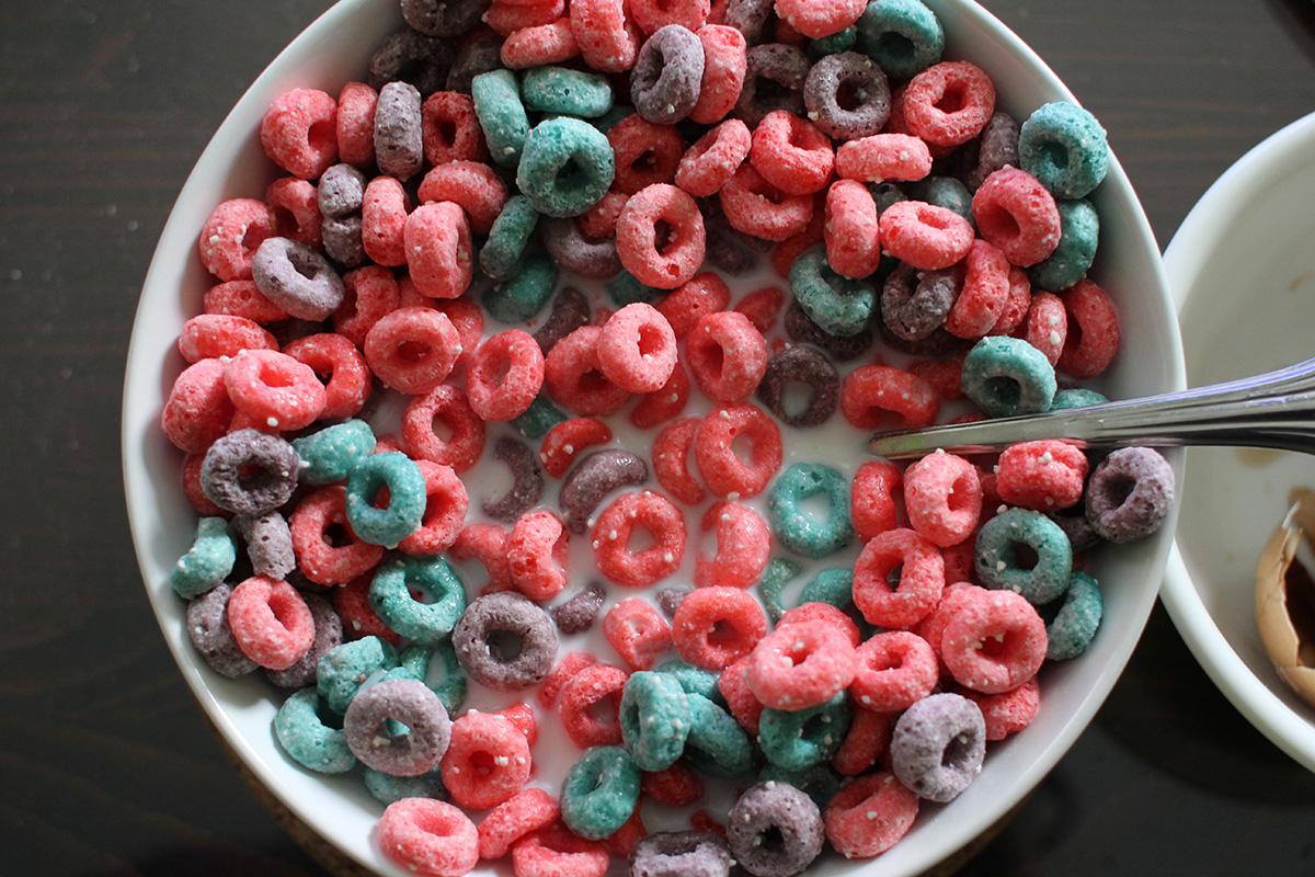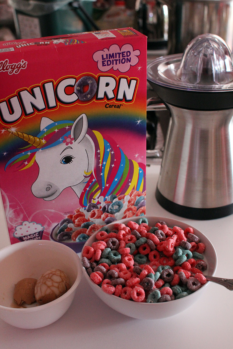 i finally tried the unicorn cereal i bought a few days ago. it's okay, your typical generic sugar cereal taste, it's more about the novelty of eating unicorn cereal than anything else. i also had a tea egg and a few gold nugget oranges.