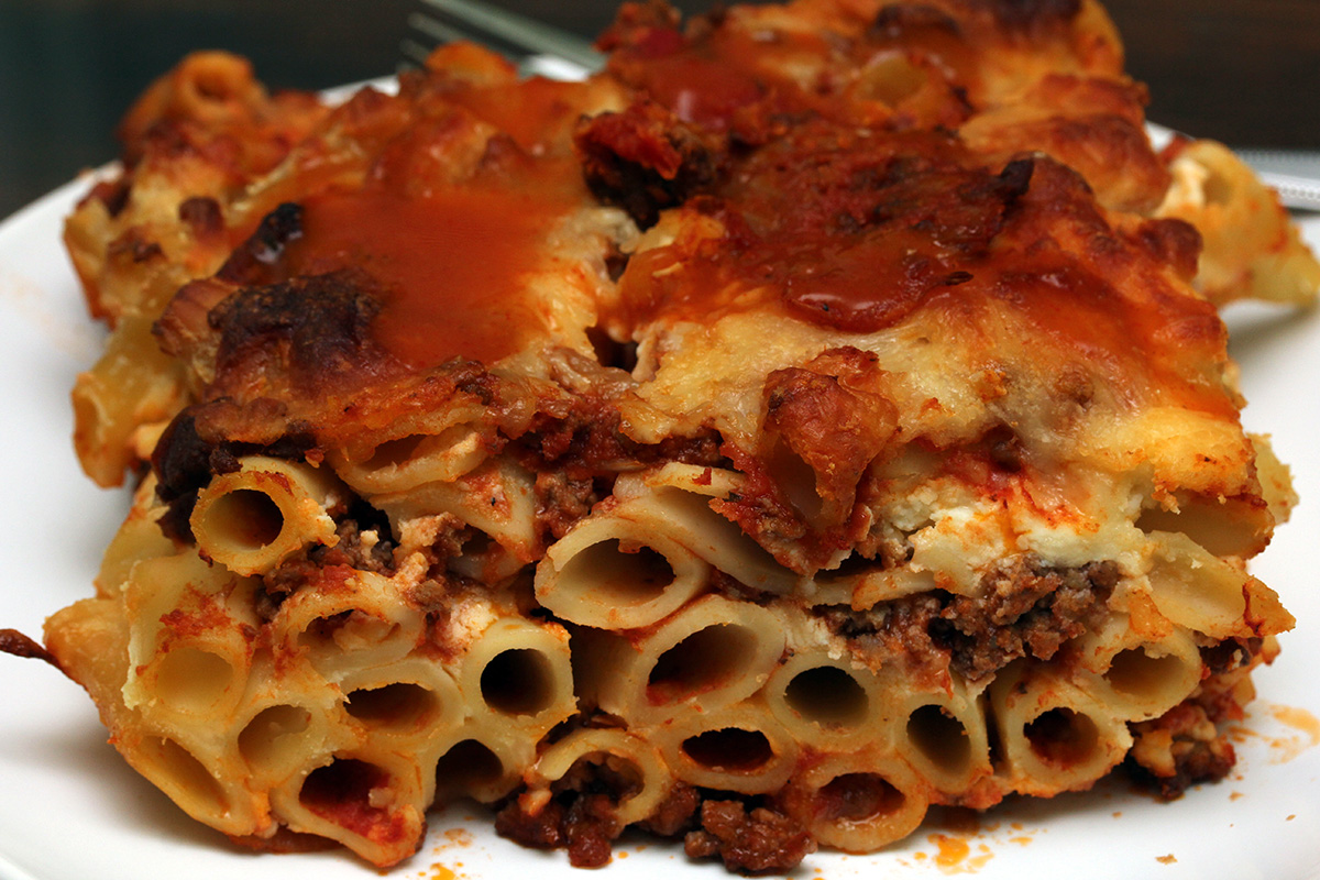 i had another slice of baked ziti for dinner, this time heating it for about half an hour at 350°F in the toaster oven.