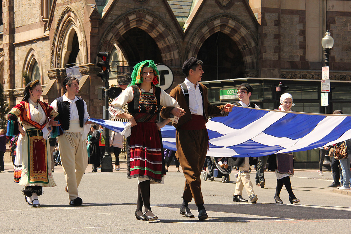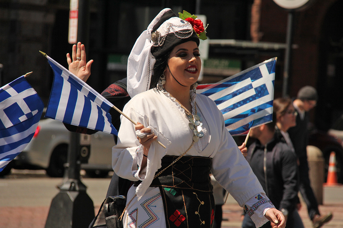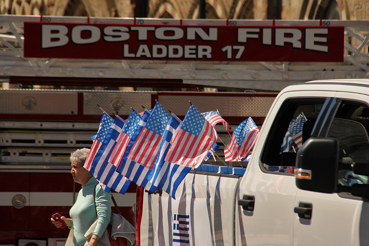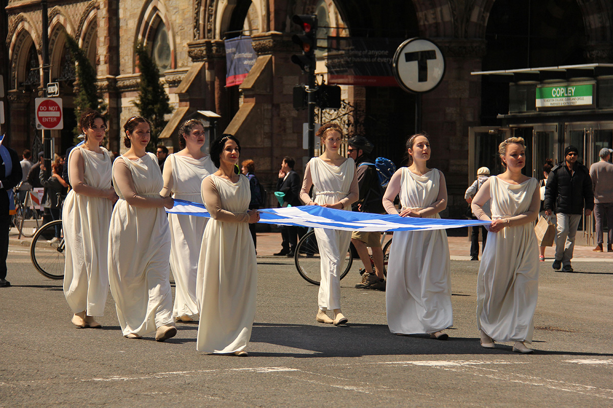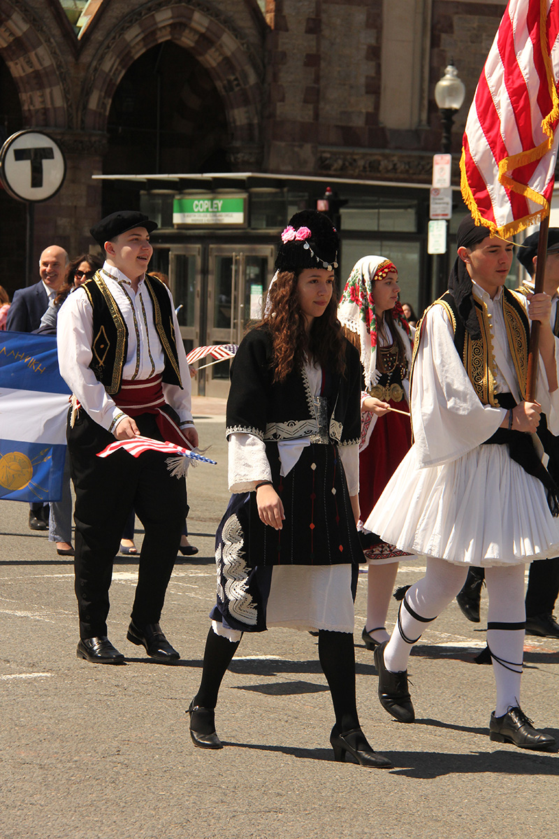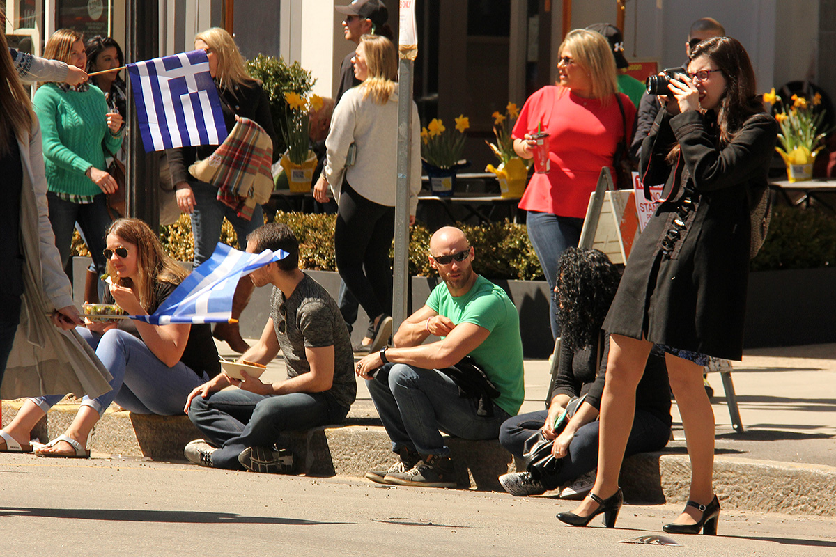 the greeks don't mess around, and the parade started promptly at 1pm at the far end of boylston street, while i waited at copley square. i texted li to let him know the parade was happening. though the weather was very pleasant, i've learned that bright sunny days make for terrible photos as people's faces can become easily obscured in harsh shadows.