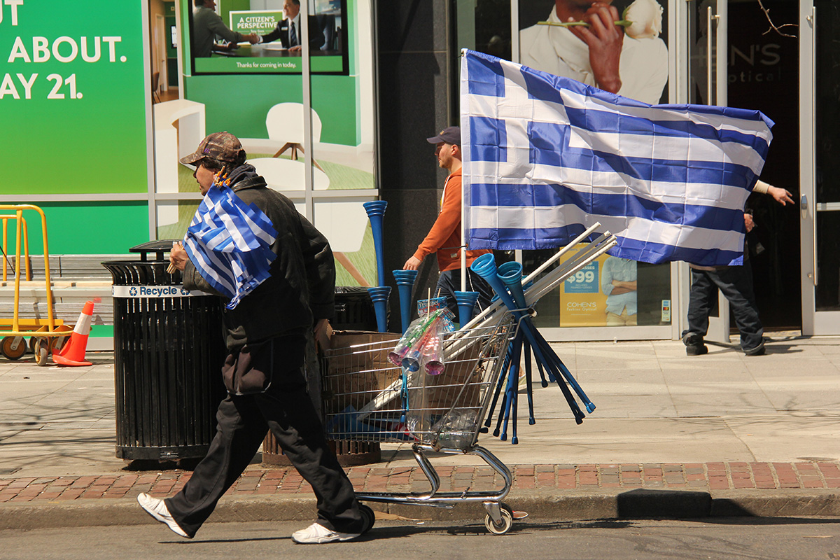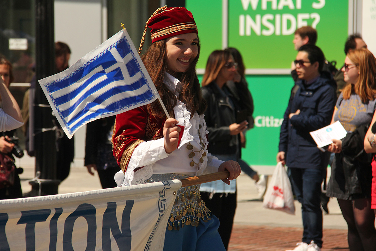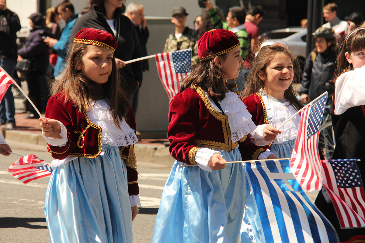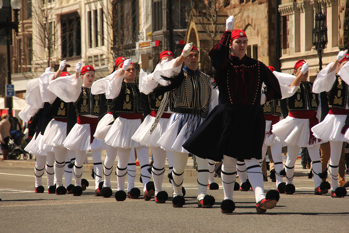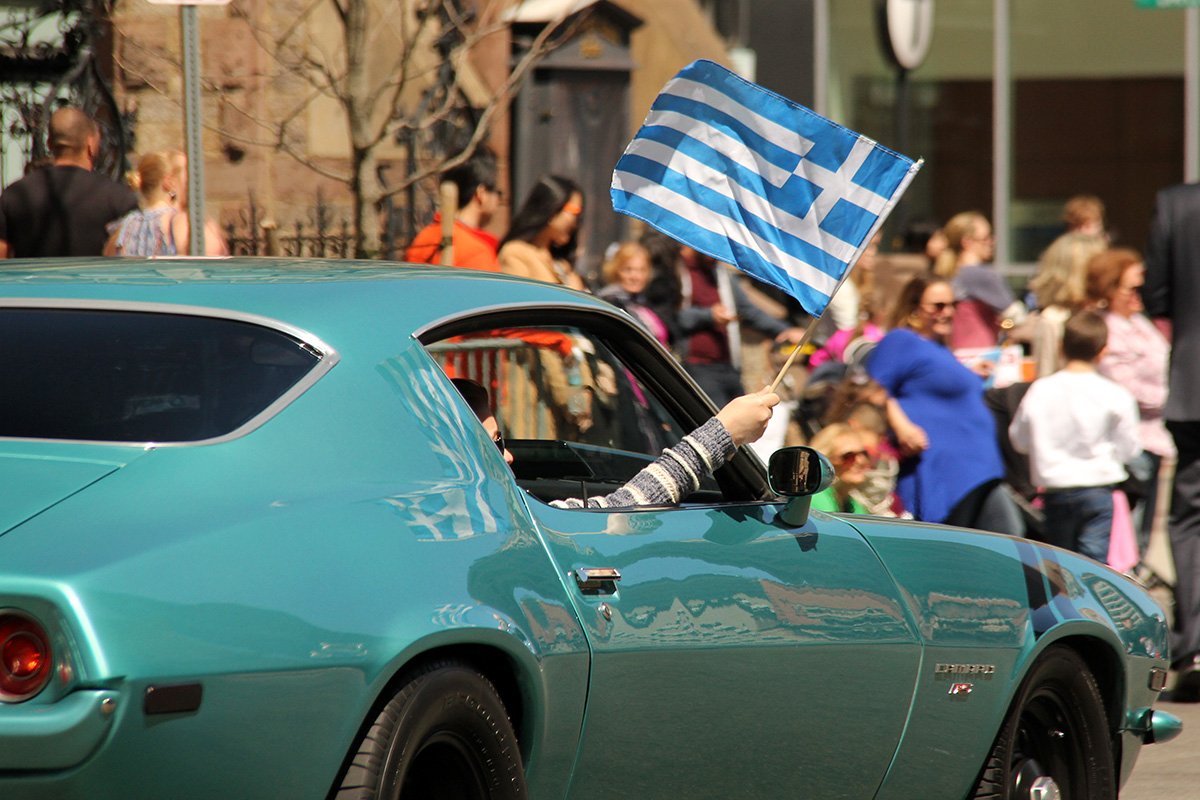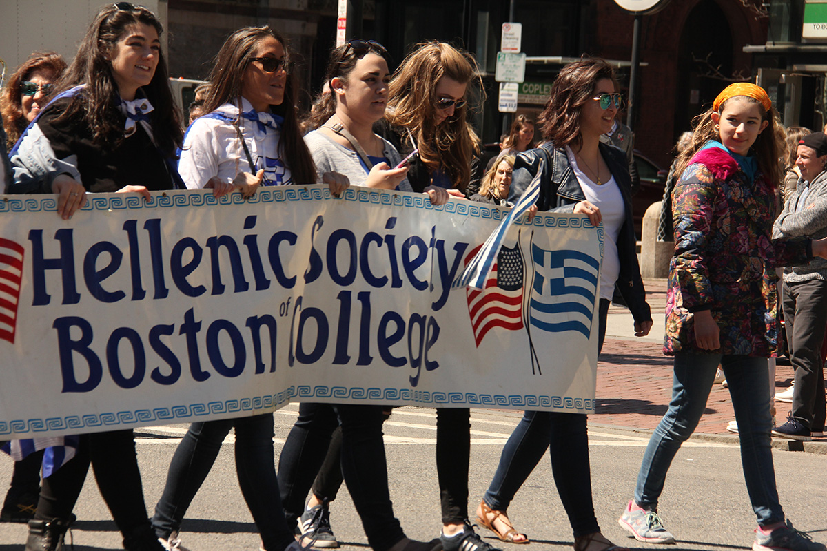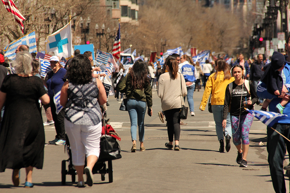 the greeks don't mess around, and the parade started promptly at 1pm at the far end of boylston street, while i waited at copley square. i texted li to let him know the parade was happening. though the weather was very pleasant, i've learned that bright sunny days make for terrible photos as people's faces can become easily obscured in harsh shadows.