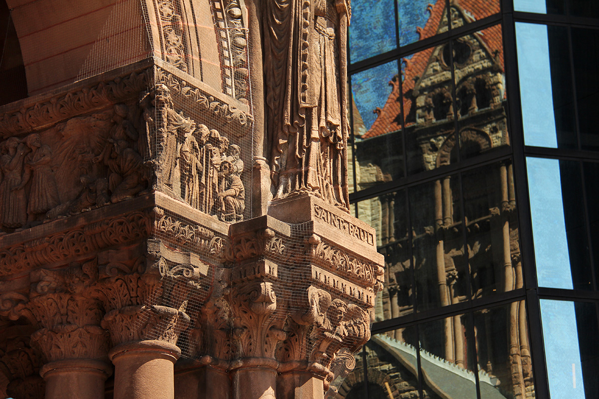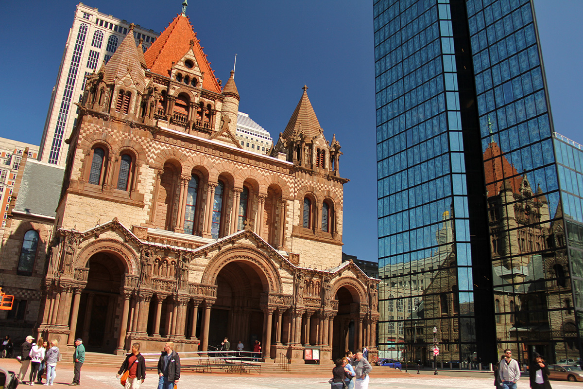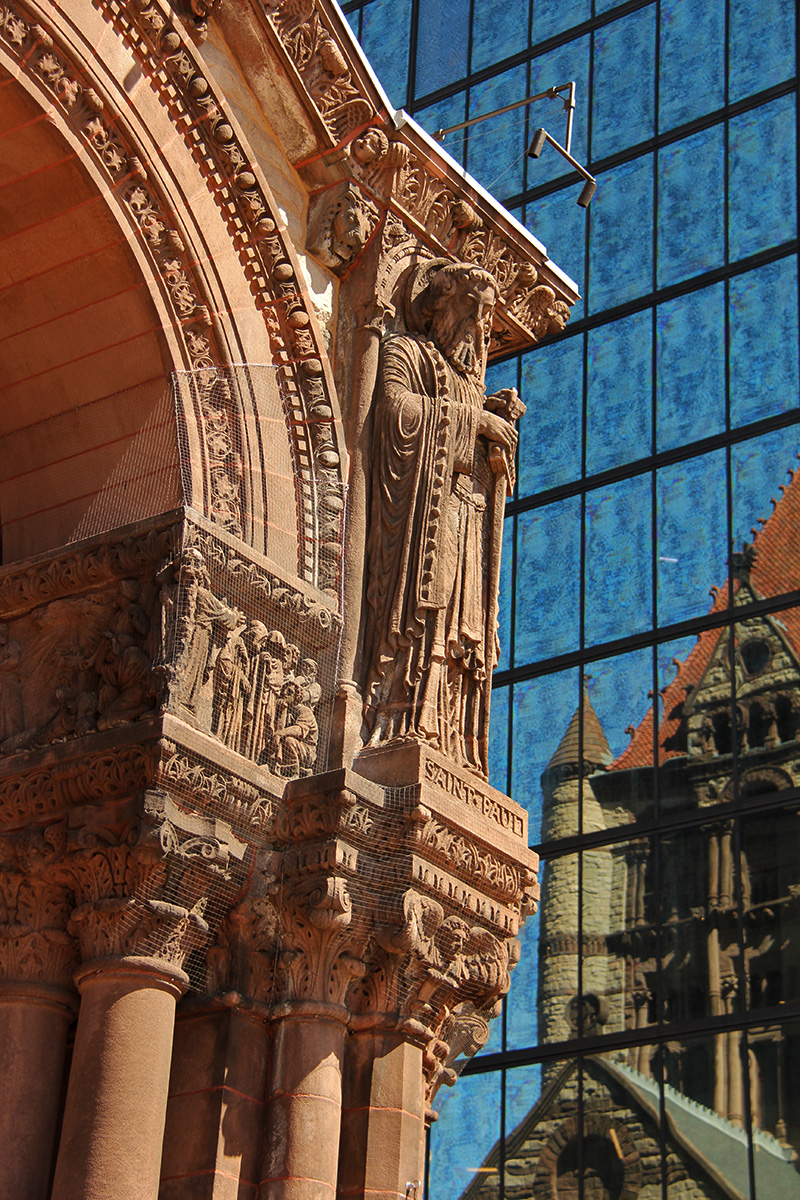 after the parade was over, peter was interested in seeing the inside of trinity church. i discovered that even though even he's been in boston since last september, he hasn't really done any exploring. the only place he's gone was faneuil hall, which is a tourist magnet, so i wasn't surprised. but as a canadian, he really had no excuses, it wasn't like boston was some strange city with mysteries ways, i imagine it's very much like vancouver. anyway, i told him the church charges admission which seemed to dampen his enthusiasm but i added that on sunday mornings they have a free tour.