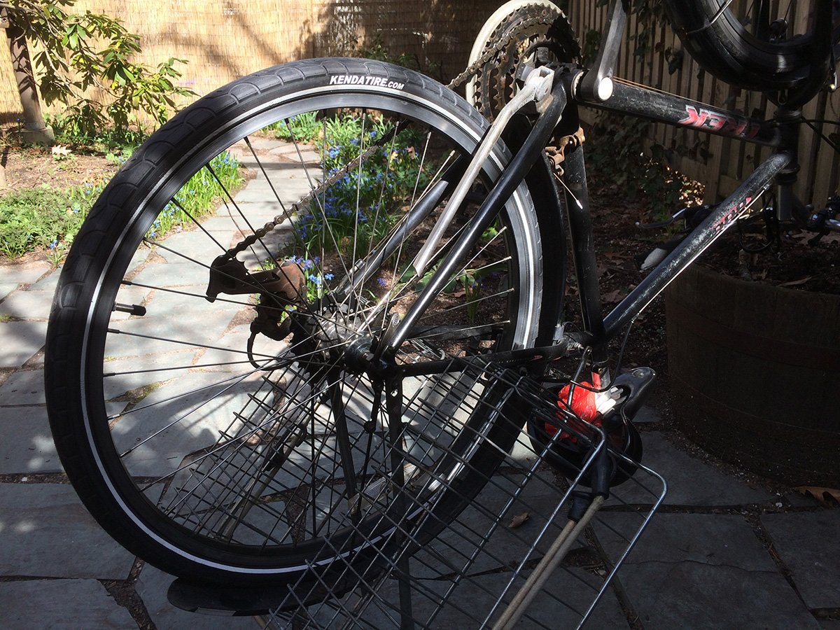 it'd only been 11 days since my cargo bike was out of commission due to a blown tire, but it felt longer than that. i did ride the cargo bike again with a replacement rear wheel, but that wheel had its own issues (wobble, broken spokes, and more importantly cursed rim that seems to naturally deflate all kinds of inner tubes), so the cargo bike has been on hiatus. but today i finally had all the parts to put the original rear wheel back together again.