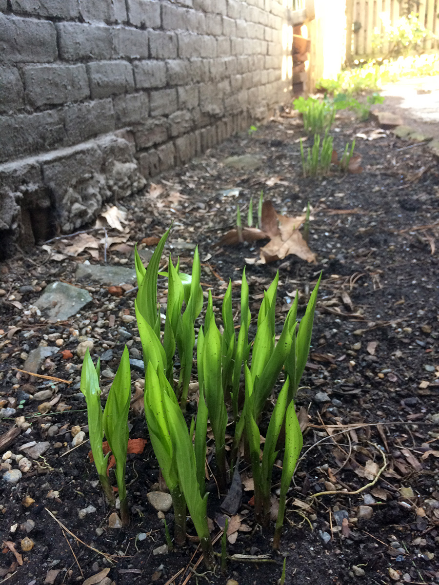my own garden plot was dotted with patches of perennials. i need to dig up the bamboo grass at some point, they're somewhat invasive, and they take up valuable real estate that can be used for other plants. the monkshood has returned fairly well, but the leaves are so similar to some other plants, i'm very much worried that it would be accidentally be picked, not realizing that all parts of the monkshood is deadly poisonous. only a single clump of lupine has survived. i also didn't see any larkspurs, even though there were some seedlings the end of last season. likewise, all the striped mallow seedlings from last season have disappeared, to be replaced with fresh new seedlings (apparently they can't survive the winter).