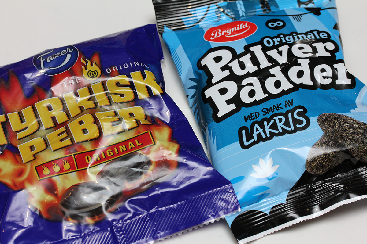i tried the scandinavian licorice frances got me, pulver padder. each piece of hard candy licorice has a weird shape, almost like a peanut, and has a dull finish on it. i've had this kind of licorice before so it wasn't as shocking as the first time i tried it. it's sweet, but also salty, and a faint aroma of ammonia. when i eat it, it feels like i'm eating ancient candy, back when it other flavors like salty and chemically. if i ever visited norway, i would just hang out at a convenience store and sample every single kind of salty licorice.