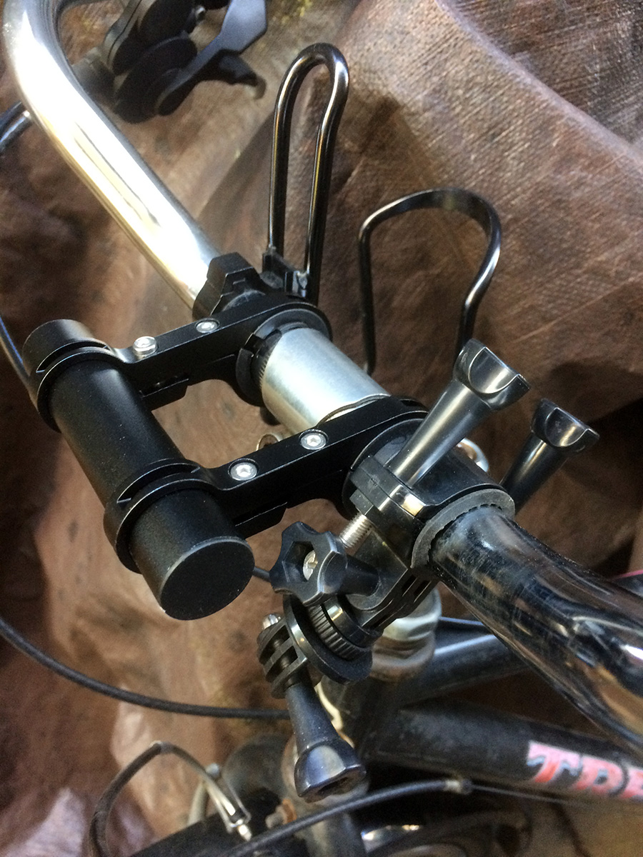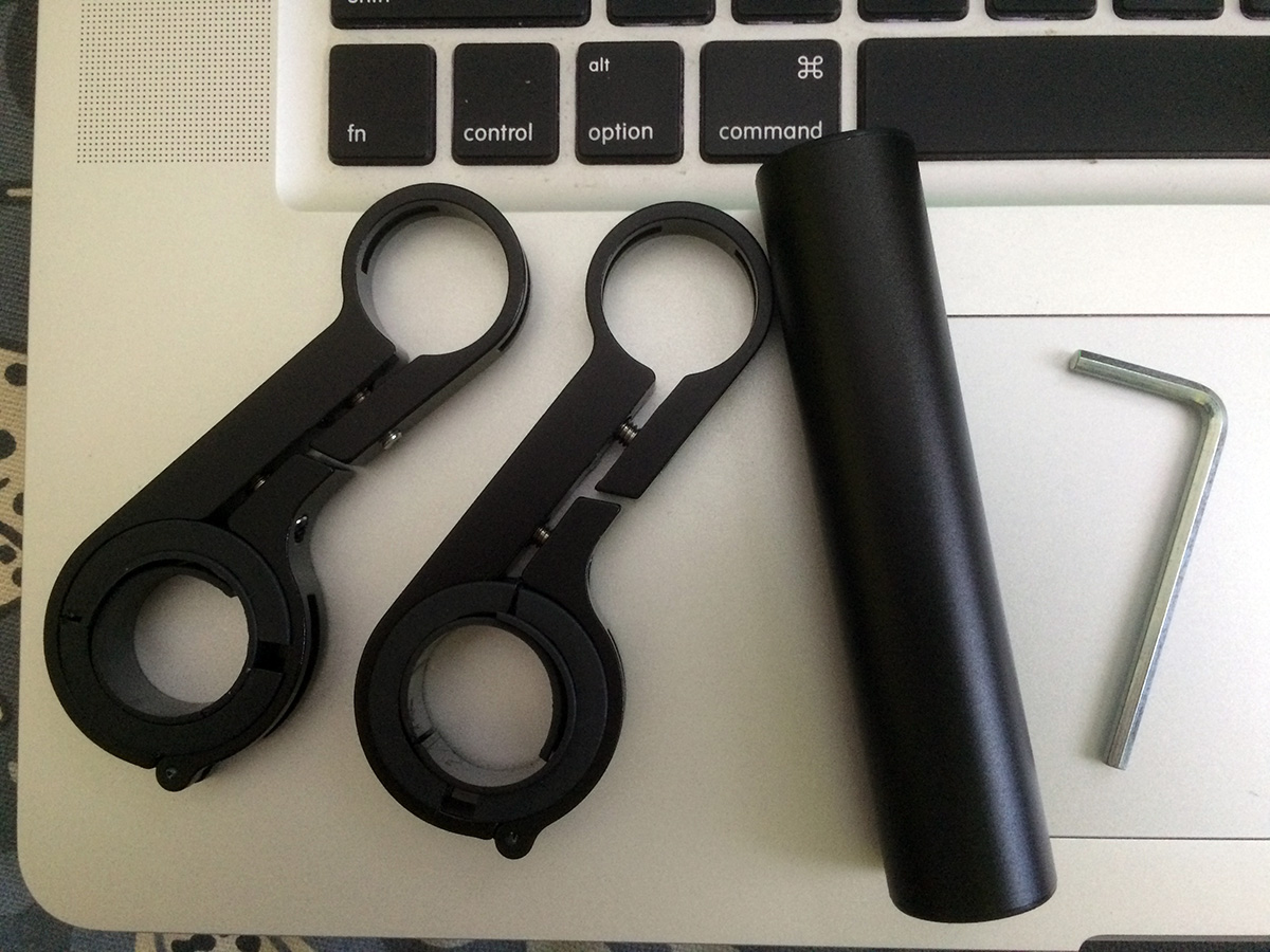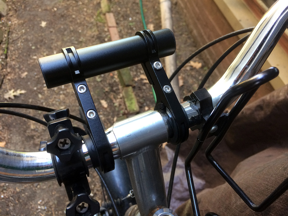 the 10cm handlebar extender i ordered off of ebay ($7.98) arrived today. 10cm seems a little short, but 20cm is just too long. it'd be perfect if they had a 15cm version but they don't. i can't wait to use it, i can finally put my night light in the middle of my handlebar instead of obscured by my action camera mount.