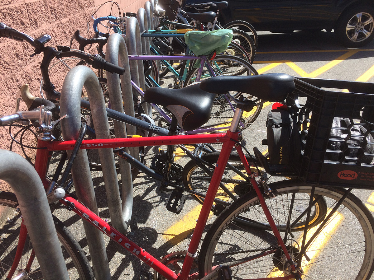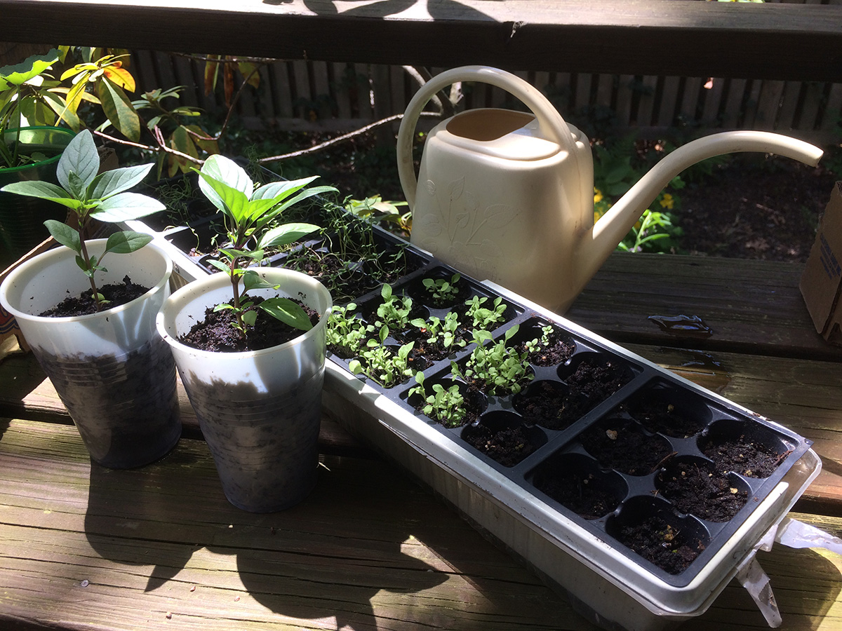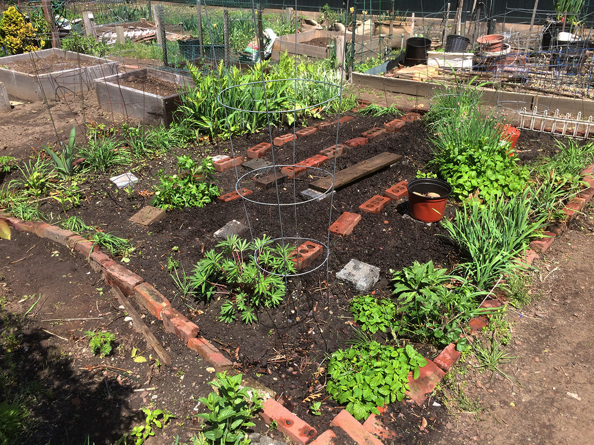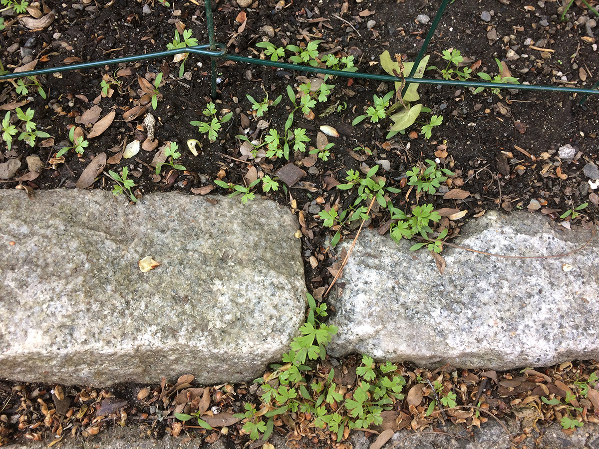 after a salmon bagel sandwich for lunch, i went to the community garden after 1pm with the bag of manure draped on the back of my cargo bike to do some more work in my plot. i planted the garlic chives around the garden perimeter then spread the crumbled manure all over my plot. the manure doesn't really do too much, it has a very small amount of fertilizing effect, it's mostly just dirt. to feed my plants i use plant-tone granules. before i left, a big noisy family of children, parents, and grand parents descended on one of the shady northwestern plots. after watering my plants i quickly left.