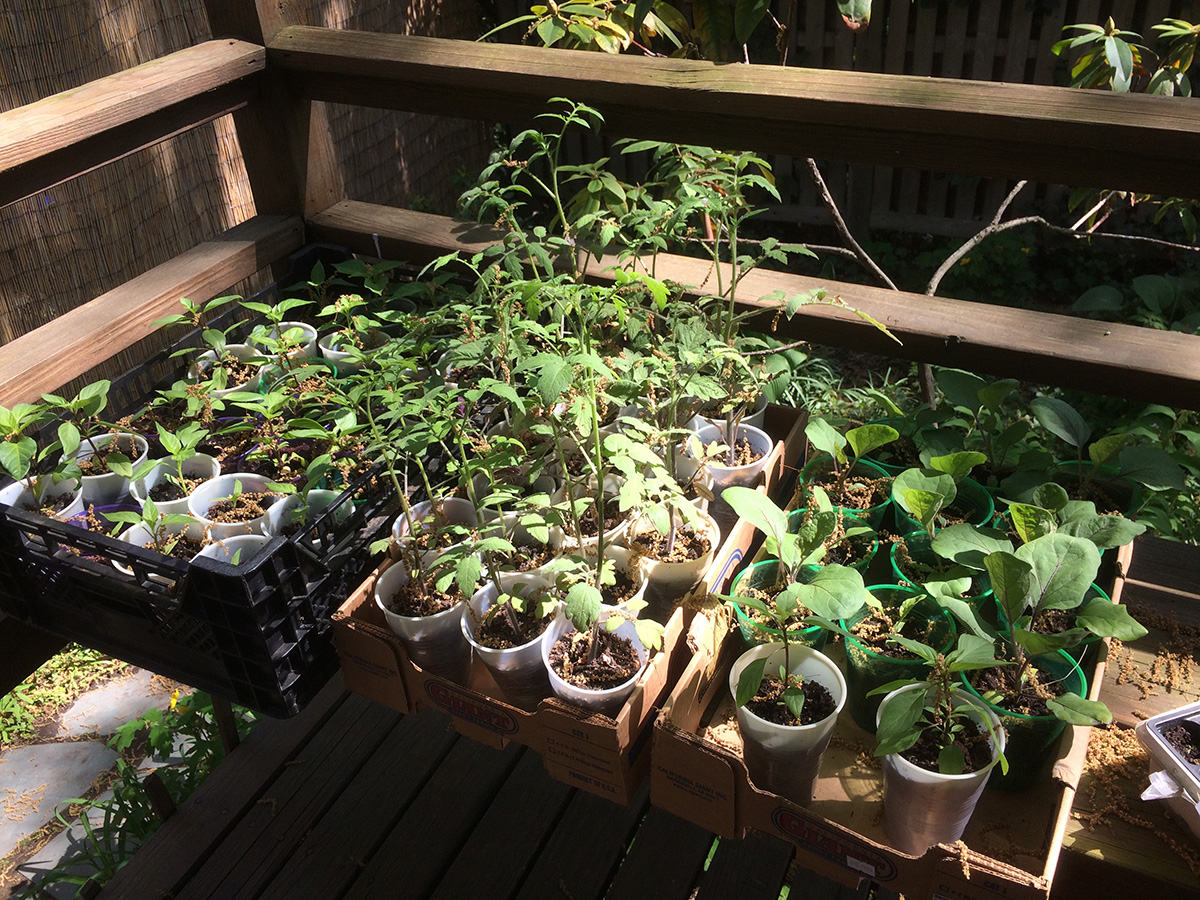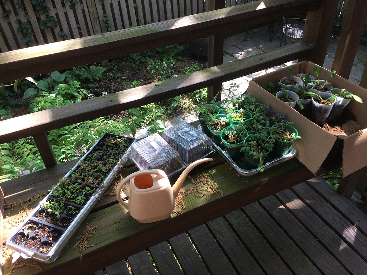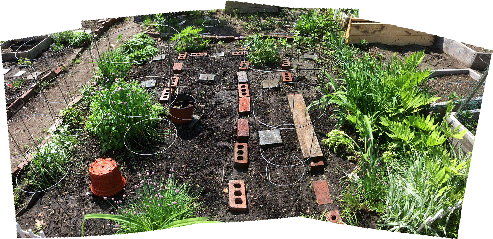 in the afternoon i walked down to the community garden with half a dozen red chrysanthemums (Chrysanthemum coccineum 'robinson red') to transplant. it was humid and hot, with a forecast of torrential downpours and thunderstorms by late afternoon. i haven't been to the garden since friday. not much have changed, except more star-of-bethlehem flowers have blossomed. the milkweeds are also a bit taller than last time. i have a lot of striped mallow seedlings but i'm worried they might get eaten by slugs, though i haven't seen any evidence of that. i planted the red chrysanthemums along the southeastern corner and eastern edge of my garden plot. they're perennials and if they grow well, the red flowers will nicely compliment the white garlic chive flowers.