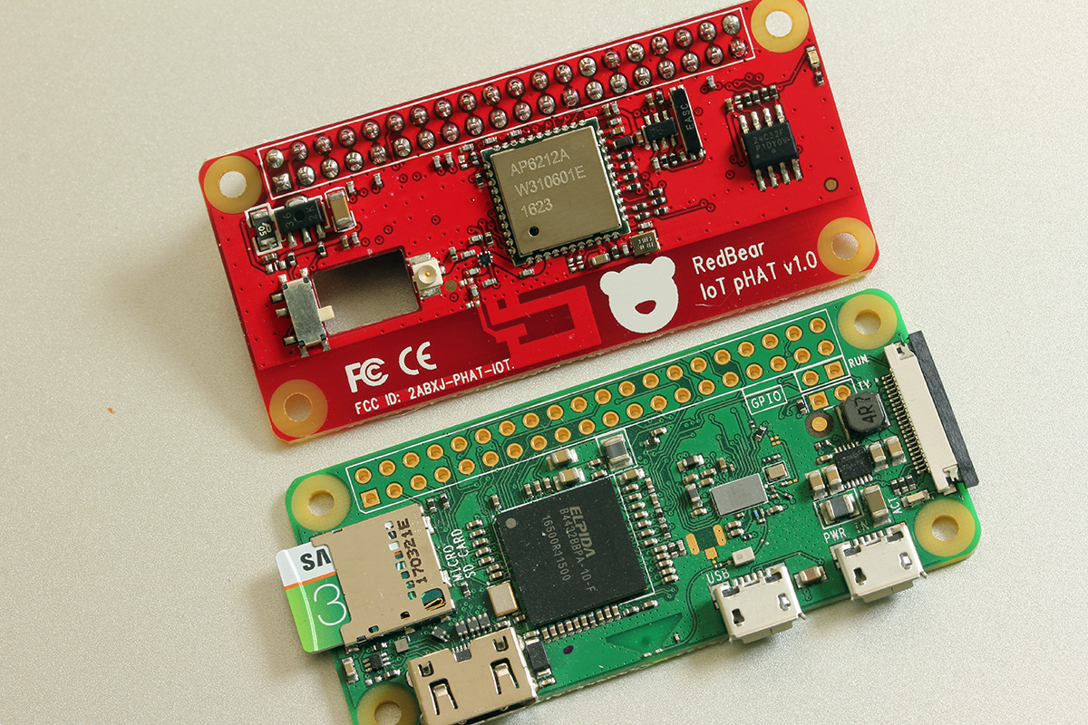 i inspected the red bear IoT pHAT board. with the advent of the pi zero W, these boards are essentially obsolete, so maybe that's why there was a clearance sale. not only that, the pHAT takes up header space and i don't think you can access the rest of the GPIO ports when it's installed (unlike the pi0w). the only good thing i can see with the IoT pHAT is the option to use an external antenna.