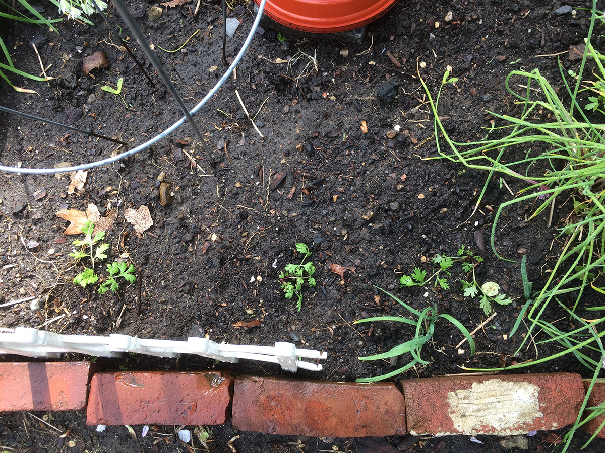 i went to the community garden in the late afternoon, my plot already in shadows. i saw lynn there, working on her narrow plot (which formerly was my old plot underneath the mulberry tree because they paved it over to make a walkway and chopped down the tree while they were at it). we got to chatting, and was joined by an older fellow i didn't recognize but seemed to know lynn (her husband maybe?). i did some watering even though the forecast calls for rain over the weekend. i noticed some gardeners had already planted their tomatoes. that used to be me! i used to be one of the first people planting, not because i wanted early tomatoes, but because my seedlings were growing too tall for the closet and i didn't have anymore room for them.