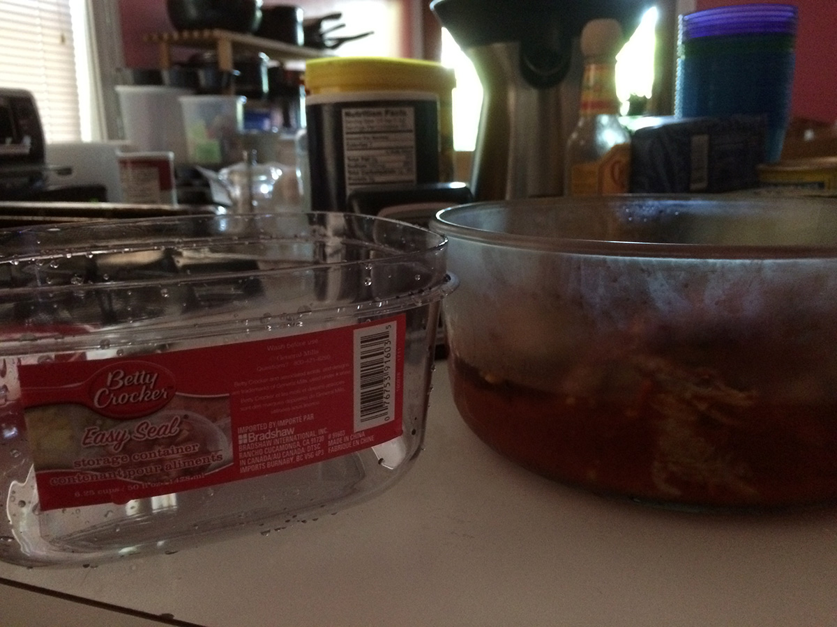 i went to the dollar store to buy a cheap $1 adjustable garden sprayer just so i could strip it for parts and transfer the spring-loaded peg into the better orbit sprayer back in belmont. while i was there, i also picked up a hard clear plastic betty crocker square container for storing my tongbaechu kimchi, which currently sits in a round pyrex bowl in the refrigerator. it can actually hold a lot, 6.25 cups (50 fl. oz.), which is big enough to hold at least 4 tongbaechu kimchi bundles (i just have 2, letting it slowly ferment in the fridge to build up flavor).