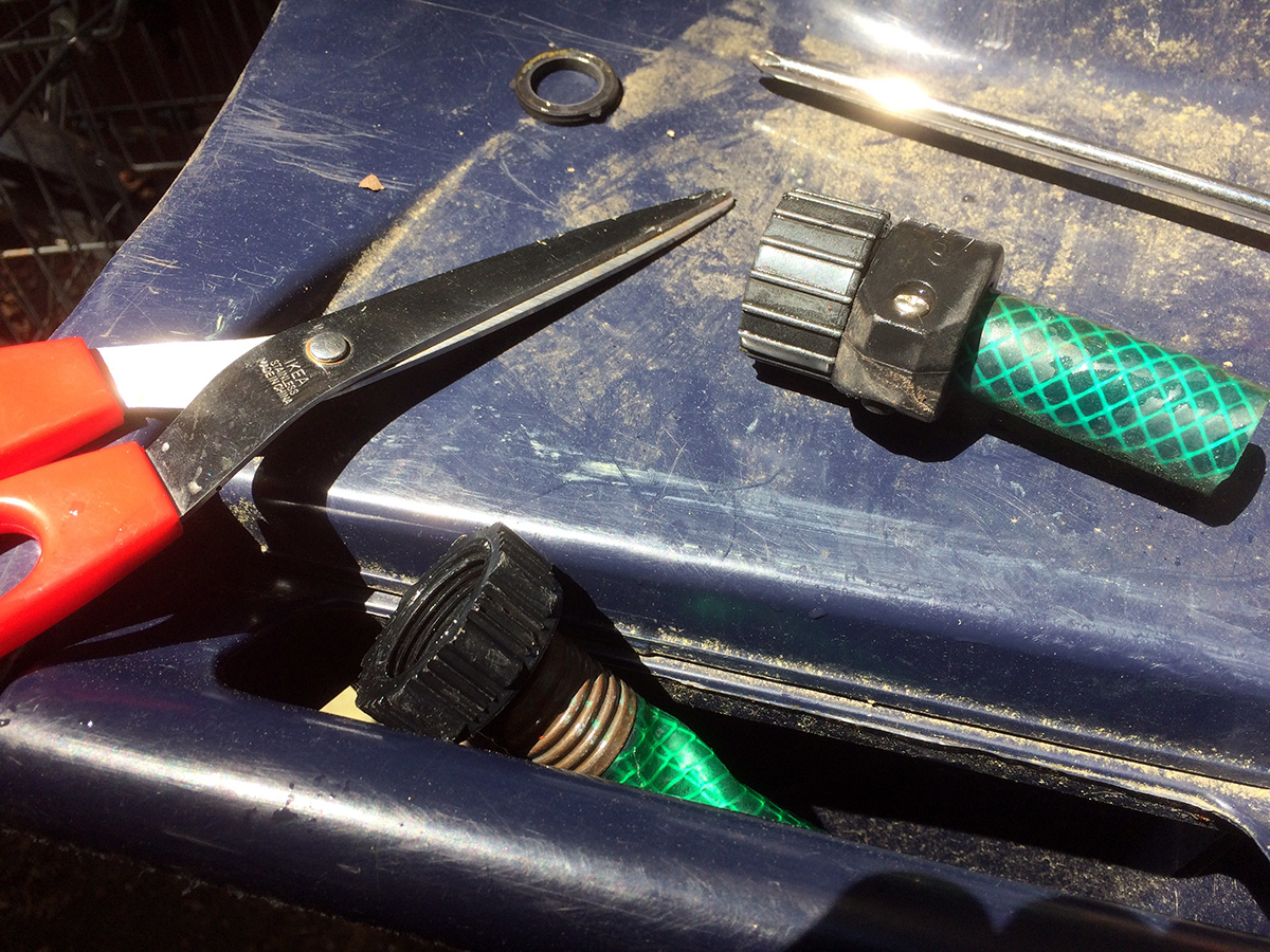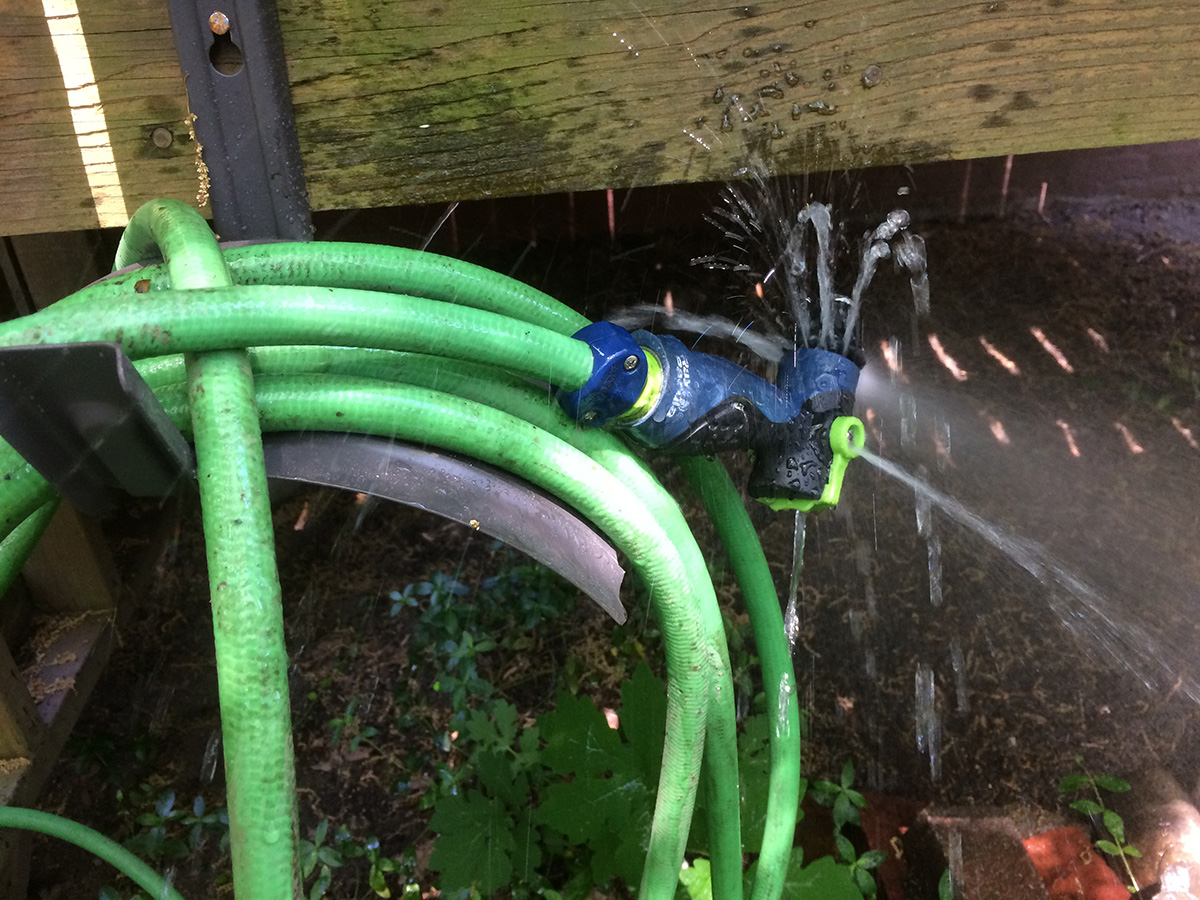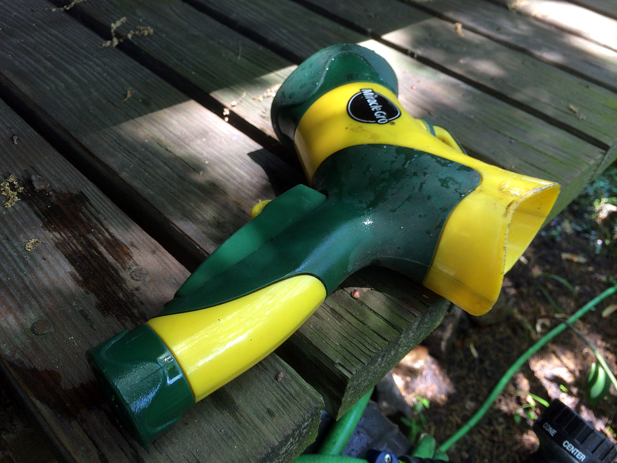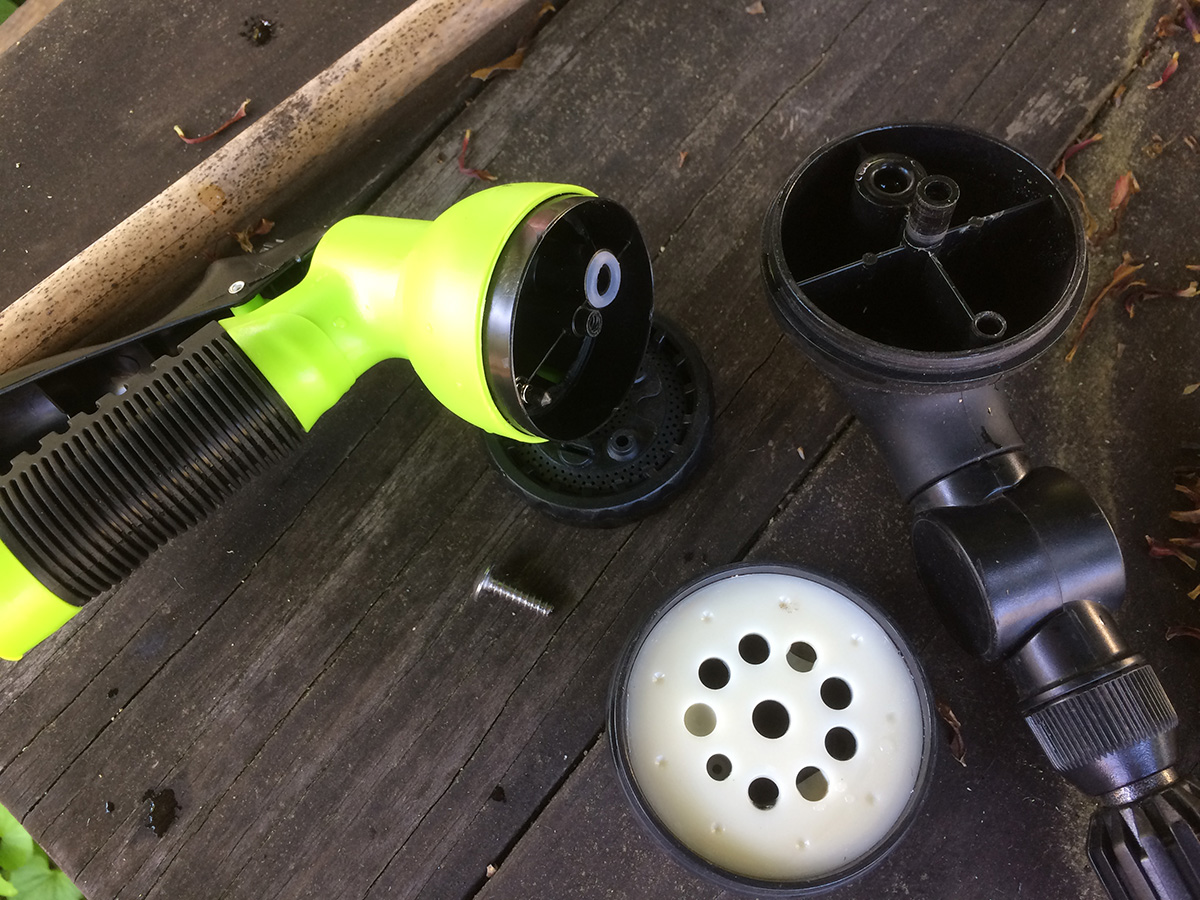 i have an old ray padula sprayer that i remember was broken but i forgot how. i tried to open it up to see if i could repair it last night, but i can't figure out how to disassemble the sprayer, and no amount of internet searching could i find a solution. when i plugged it in, it sprayed water everywhere, so obviously it's no good. paul has an old plastic miracle-gro sprayer, but it has terrible pressure and seems very delicate. i ended up attaching a metal orbit adjustable sprayer i had and watering both the front and back yard.