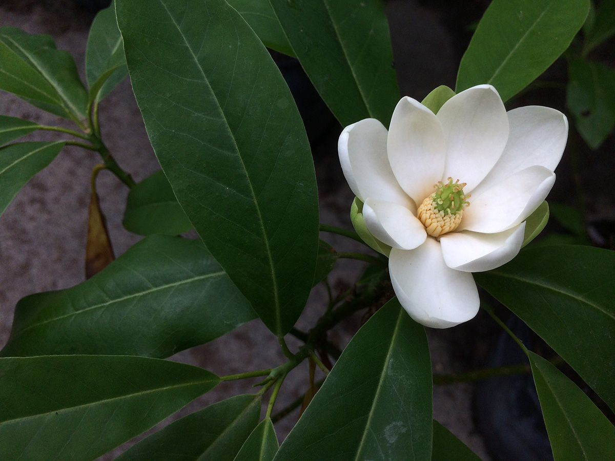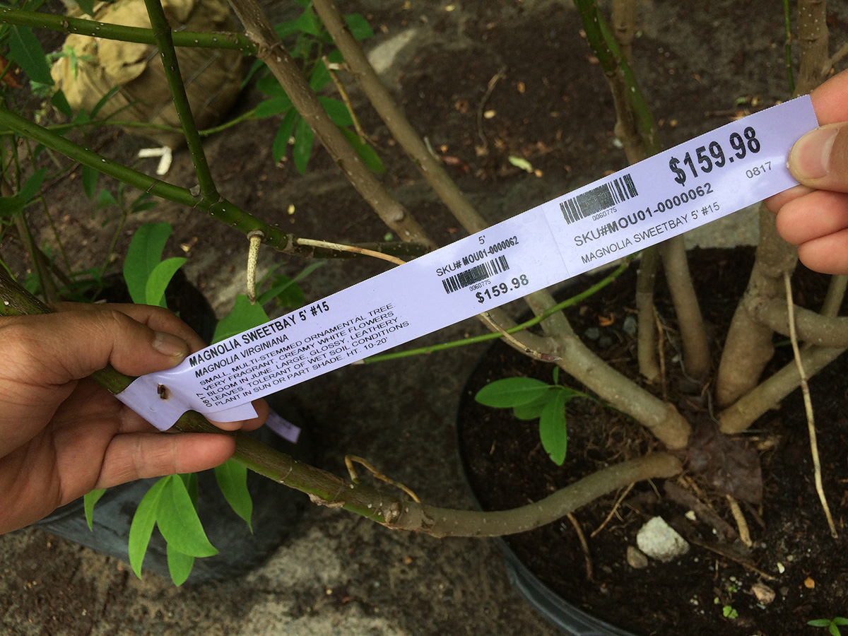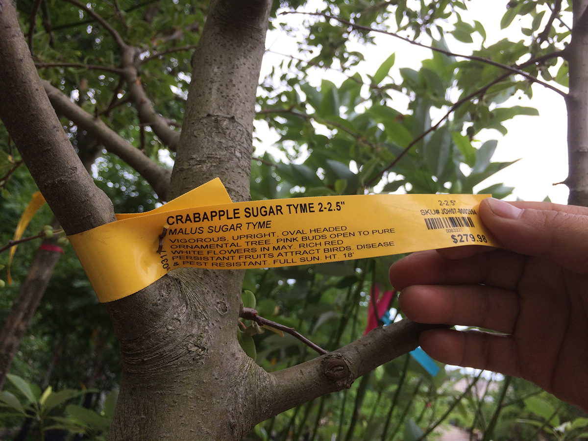 which checked out some of their other tree selection. we were particularly struck by the sweet bay magnolia, with lush white flowers that looked like they'd be very fragrant and they definitely didn't disappoint. the scent reminded me of tea flowers. my father wanted to get one, but wasn't sure if it'd survive our new england weather. we also saw a very good looking crabapple, 'sugar tyme.' it'd be worth getting except the flowers are white and we wanted a deep pink.