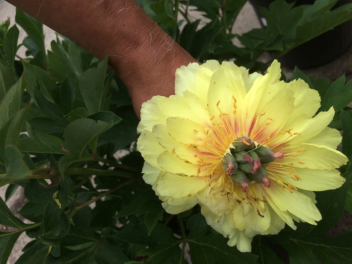 most of their ornamental japanese maples were gone, but there were still a few left. there was one tall 7-8' specimen, 'red emperor,' that looked like it was on red fire sunlit from behind. the cost? $800, not factoring in the cost to hire a team to move and plant it. i also like the japanese maple 'golden full moon,' which have roundish maple leaves. the one that they had was already sold ($600 for a 4ft specimen) but the owner must've forgotten about it. they sold a bunch of peonies, all yellow, which my parents have only discovered this year and now can't seem to get enough of yellow peonies. these were itoh peonies 'bartzella,' a container costs $80 each.