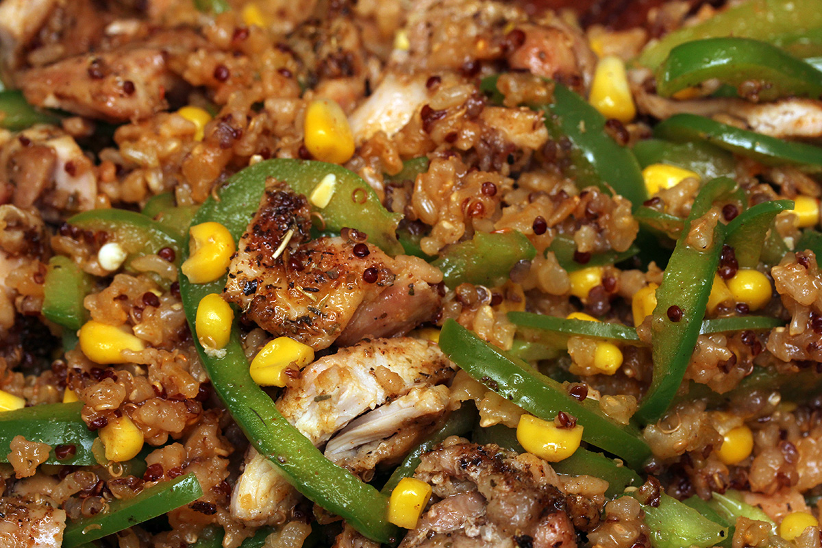 for dinner i made two dueling recipes: a crispy baked chicken thighs recipe i found online (there was a MB sale on chicken thighs this week), and a sample package of knorr southwestern chicken brown rice & quinoa meal starter (given our during the harvard square may fair). i made a mistake with the chicken thigh purchase, i bought boneless skinless, which means no crispiness. the baked chicken was okay, but i kept on thinking how much more delicious it would've been marinated and then cooked over a live wood charcoal fire. the instructions for the brown rice & quinoa called for chicken to be cooked with the rice but i cooked my chicken separately, then mixed it with the rice once everything finished cooking. the rice was okay, but nothing to write home about. too bad i have a few more packets left.