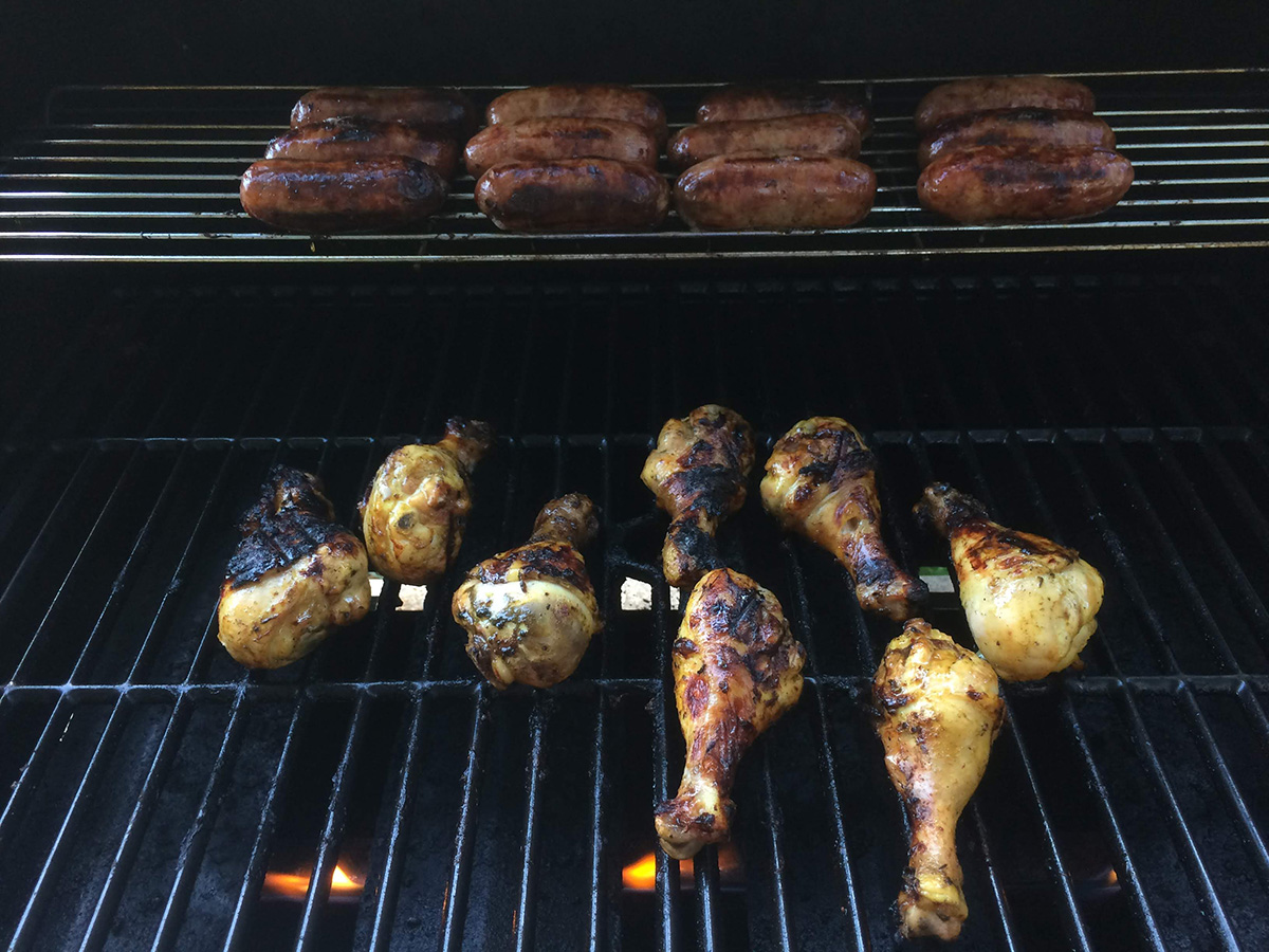 we barbecued some italian sausages and honey-mustard marinated drumsticks and grilled a salted rainbow trout for dinner. i biked home afterwards in the daylight (7pm), returning to an empty house (at least until next week).
