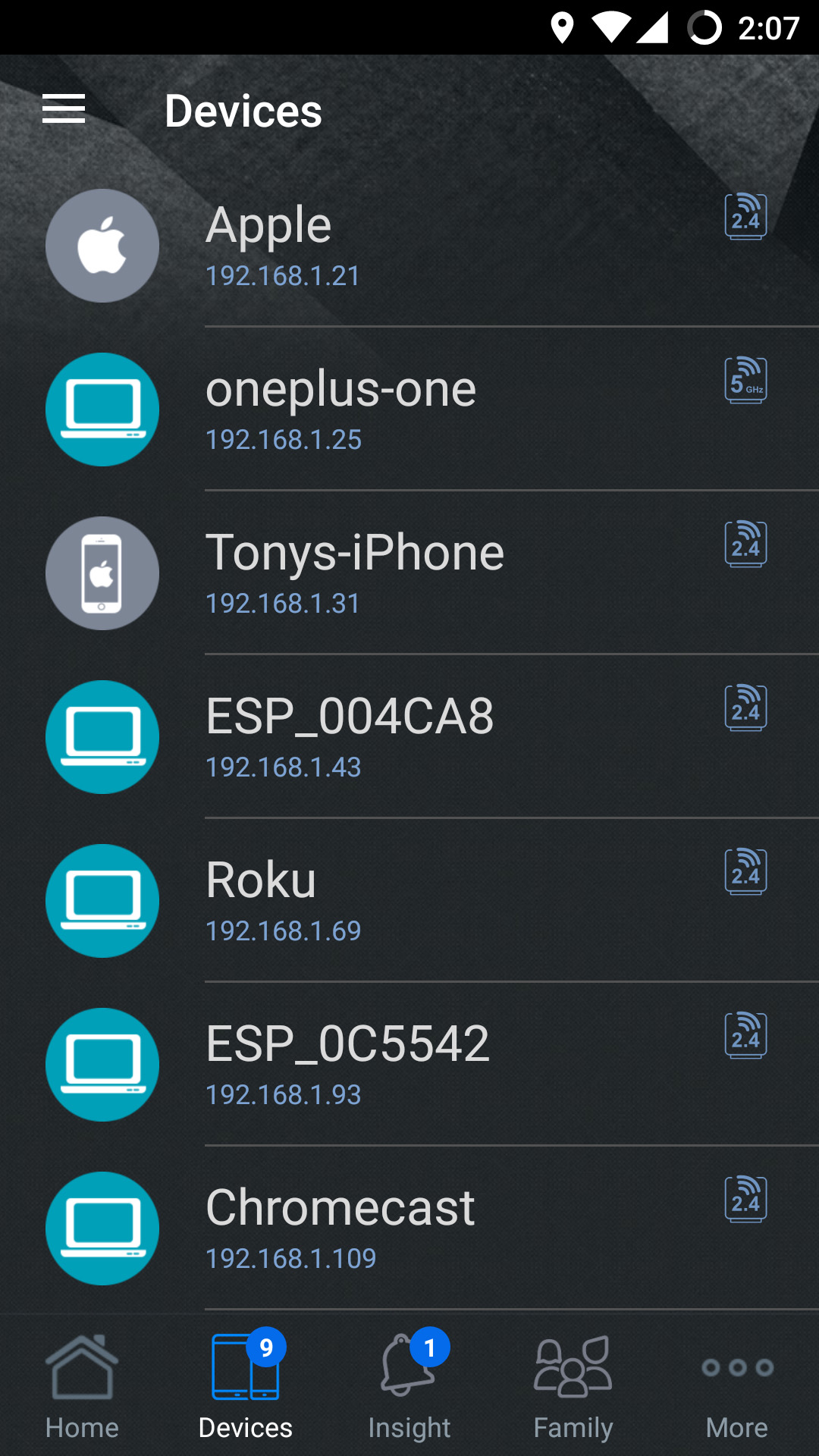 next i tried connecting the new router to the asus network app. i couldn't figure out how to do it, and thought maybe the app can only connect to a single router at a time (in this case my sister's router which i can monitor remotely). but then i discovered that adding a new discoverable router is actually located on the Insight page, which isn't that intuitive. once i found it though, it was easy to add the new router.