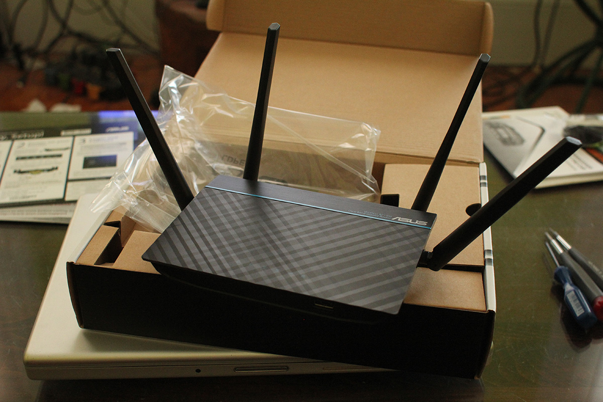 a package from amazon arrived in the late morning. four separate orders made during 2 days of amazon prime, consolidated into a single box: the asus RT-ARCH13 router ($45), arctic MX-4 thermal paste ($6.84), 64GB sandisk microSDXC card ($13.99), and 10pak of aqua seal washers ($10.52, for my tub faucets).