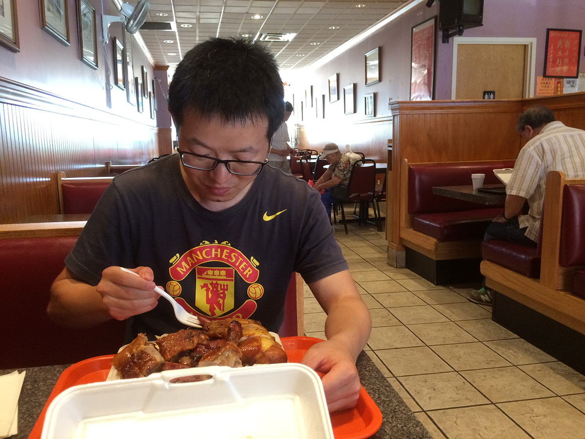 the parade was finished by 1pm. we biked to chinatown behind the procession to get some lunch. originally i was thinking dim sum, but decided on the chinatown cafe because i had a craving for some salt & pepper pork chops and the 88 supermarket was close by. GC decided on the three treasure rice. i said i wanted to treat, but he fought me against it. i thought he was going to treat instead, but when he found out they don't take credit card, he just paid for himself, and i ordered separately. the place wasn't quiet, and it was a good spot to have a quiet lunch, although by the time we left, a line of customers had suddenly formed.