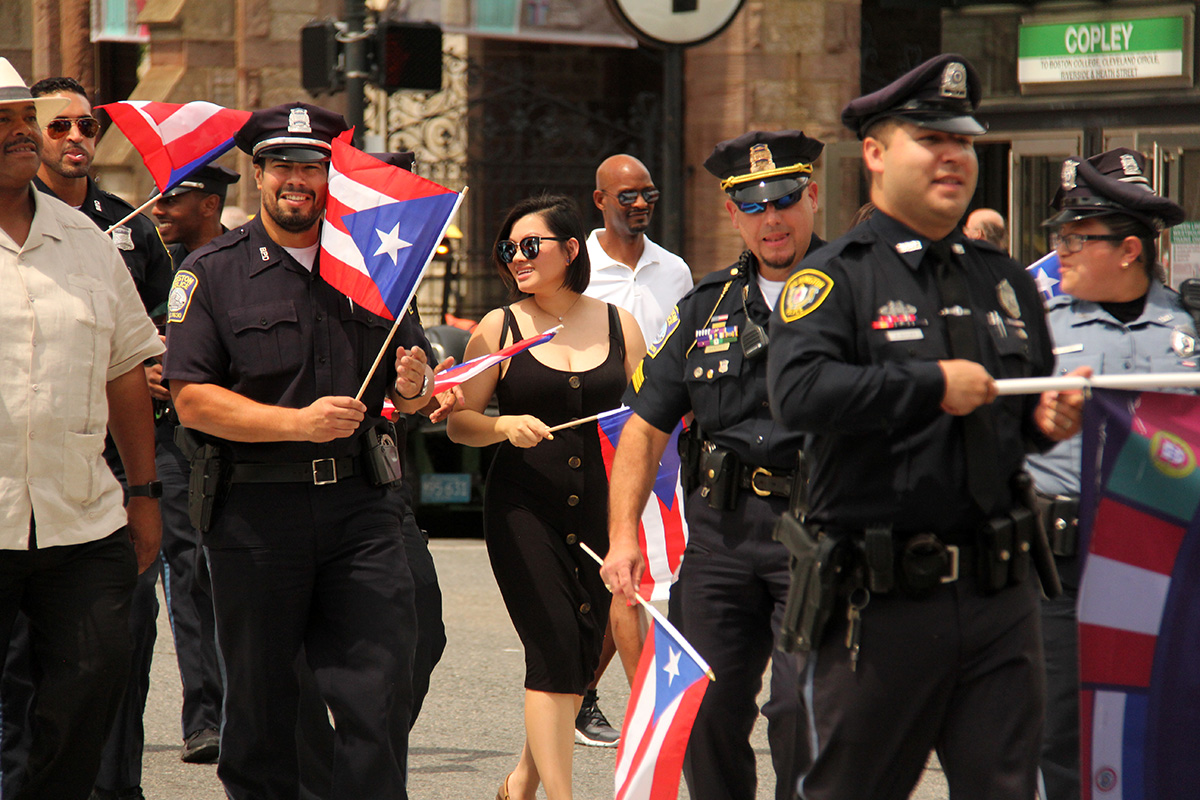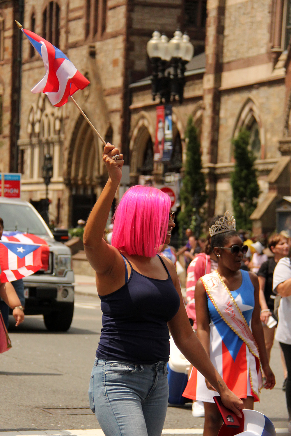 the puerto rican parade is one of the smaller parades that happen in boston, and only the third parade that goes through copley square (the other being the greek parade and the pride parade). it was a nice day, and i was really there to get some practice with my camera and to check and see if my 18-200mm canon lens is still working or not. it started acting weird on me when i was in NYC, the lens would continue to hunt for a focus point even after i stopped pressing the button. i thought i'd need to send it to canon factory for repairs, but using it today it never once misfired. i still have my doubts about the continuous tracking function, but that's always been hit or miss.