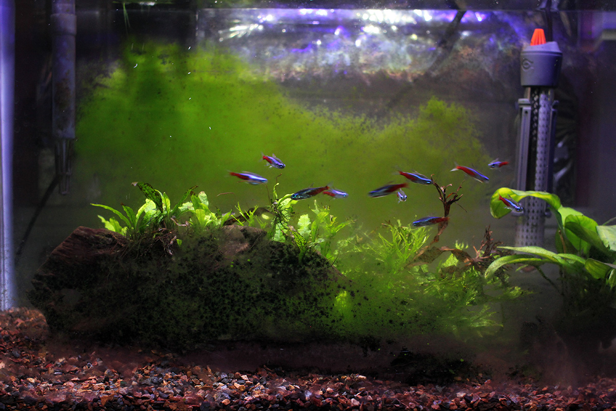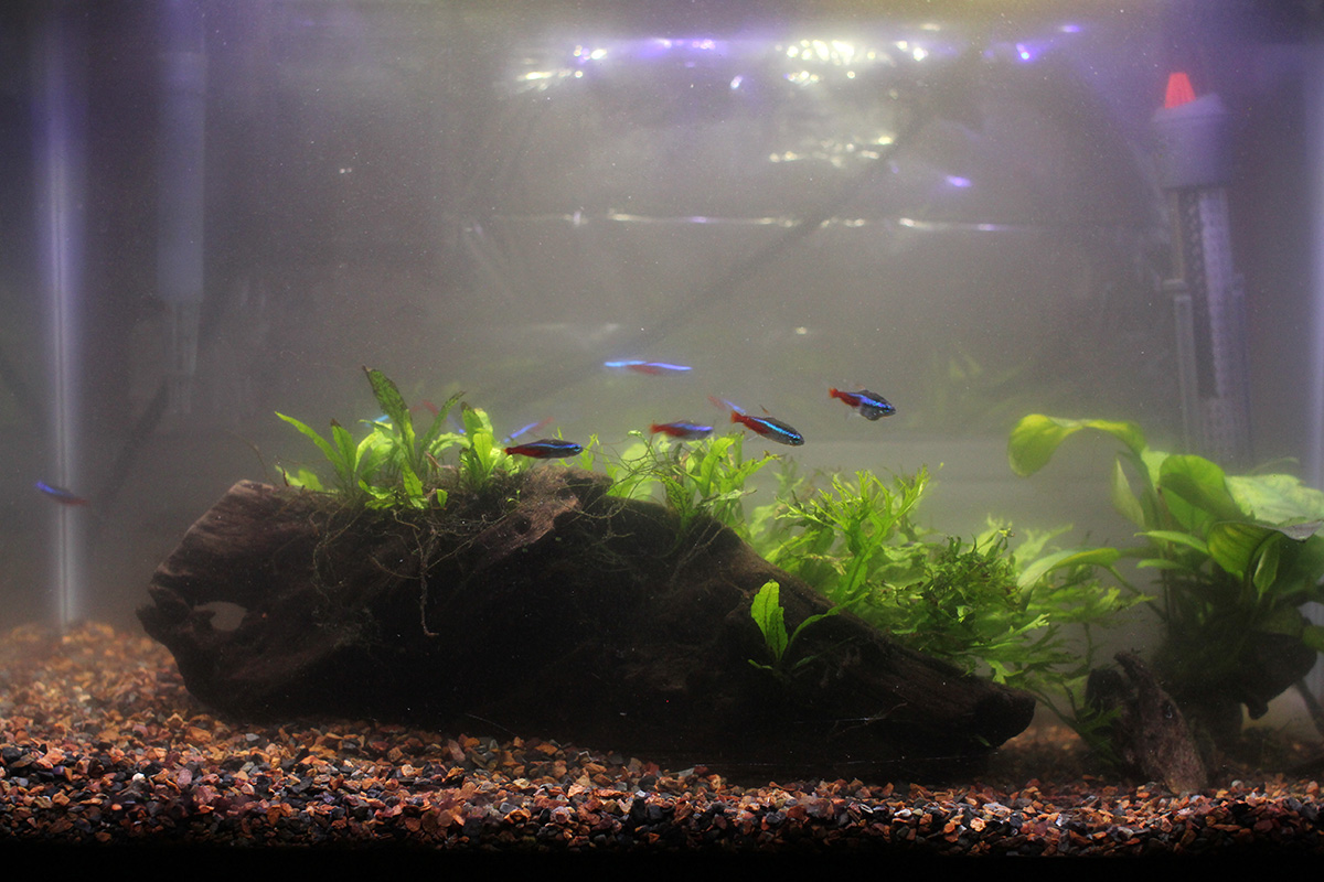 since i was on a watery kick today, i decided to clean the aquarium as well. the last time i cleaned was back in mid-june, so it's been almost 2 months, long overdue. the filter's so gunked up the circulation is on the slow side, giving the algae a good environment to blossom combined with the summer heat. algae is only forming on the glass though, and not on the live plants, which means it's easier to clean. if i did more frequent water changes there wouldn't be so much algae. i also changed the activated carbon. my java ferns are growing, but slowly. far better than what it was like before i added the fish, when everything was covered in algae. how can i get these ferns to grow faster?