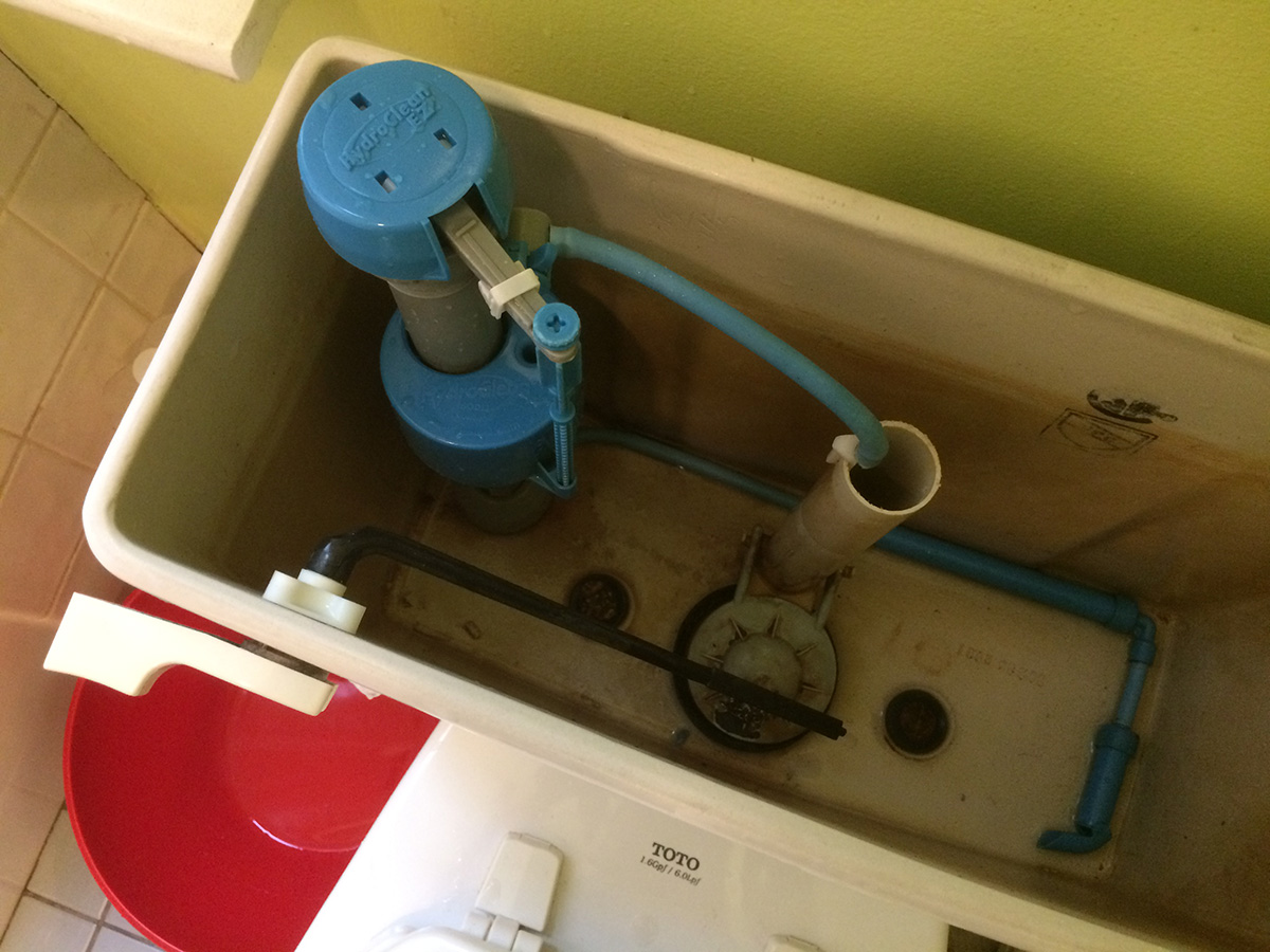 i noticed it when i woke up briefly in the early morning to use the bathroom. the toilet was completely silent after i flushed it. normally there's a loud hissing sound as the tank gets refilled but i heard nothing. too early to do anything about it, i went back to bed. when i woke up proper hours later, i opened up the tank to investigate. after a flush, the tank was nearly empty, filling up at just a trickle. something was wrong with the fill valve.