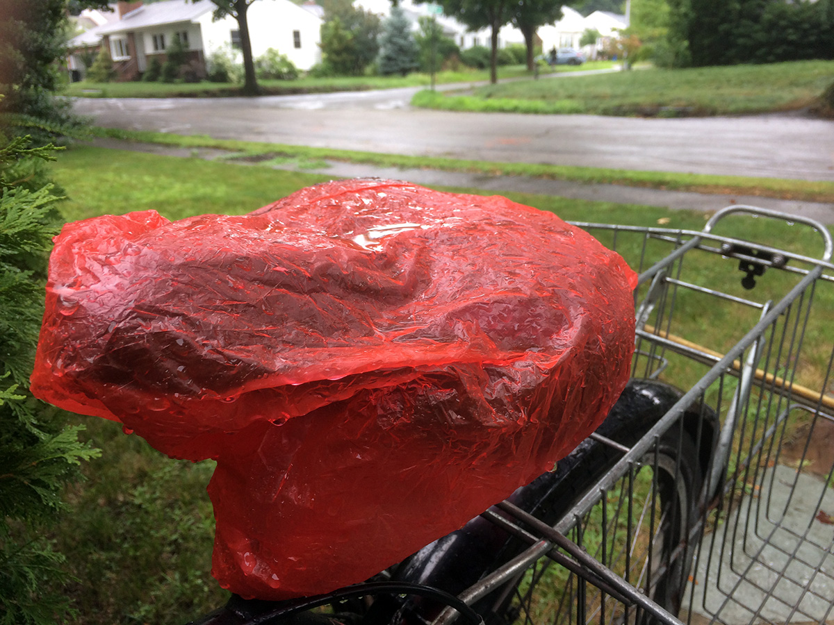 i was going to take the bus to belmont due to the torrential rain we were going to receive, but the forecast said it would be fine in the morning and evening, so i decided to risk it. first i went to michael's to get a spool of yarn my mother had requested. returning home and gathering my things, i left by 10am. by the time i arrived at my parents' place, it'd already started to drizzle. i covered up my bike seat with a plastic bag to keep it dry.