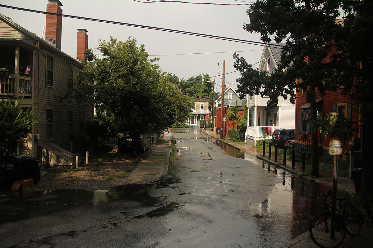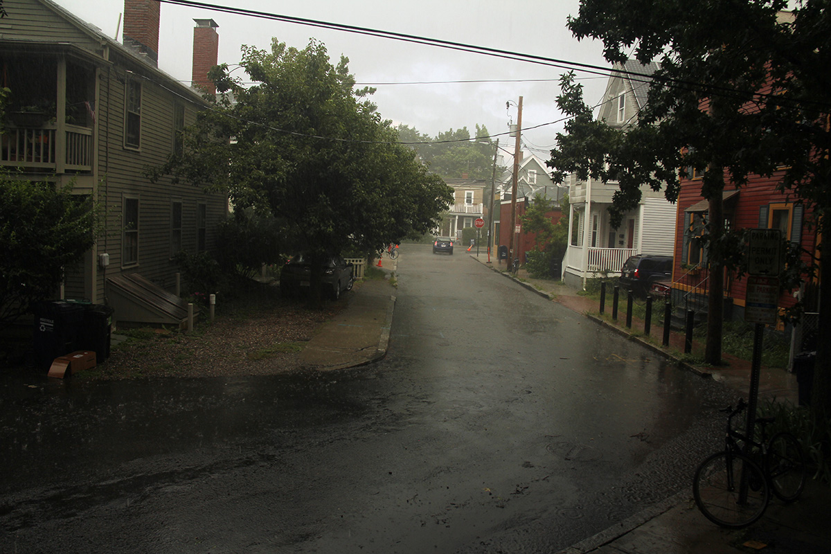 we had several bouts of torrential downpours today, on this warm and humid day. i went out to video record the gutters, which don't seem to travel down the down spouts anymore but instead cascade off the gutters from the sides like waterfalls. maybe okay when it's just rain, but come winter they're going to freeze and may damage the house. i told steve about it, told him i'd try to find some local contractors to fix it on the cheap, but so far no luck yet.