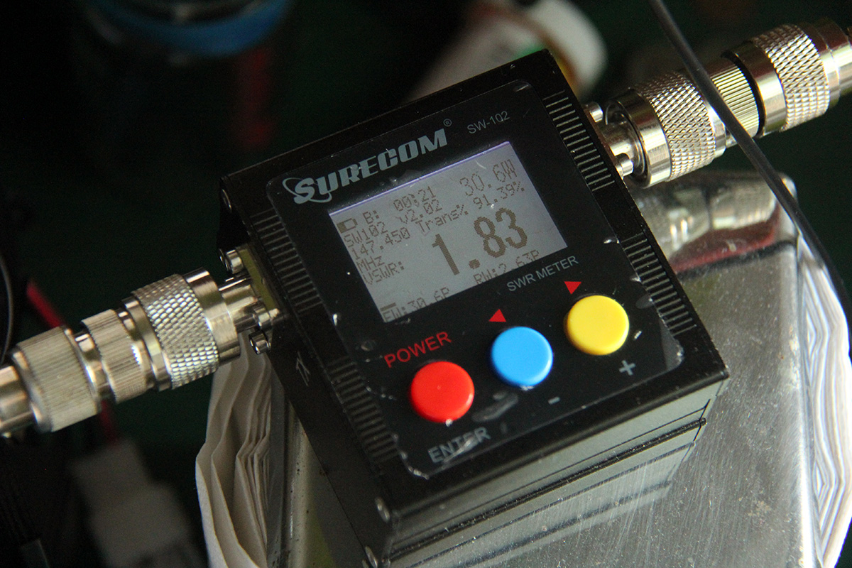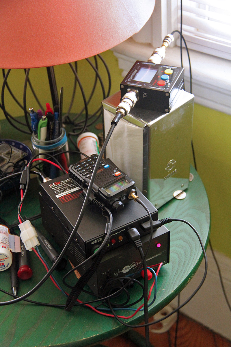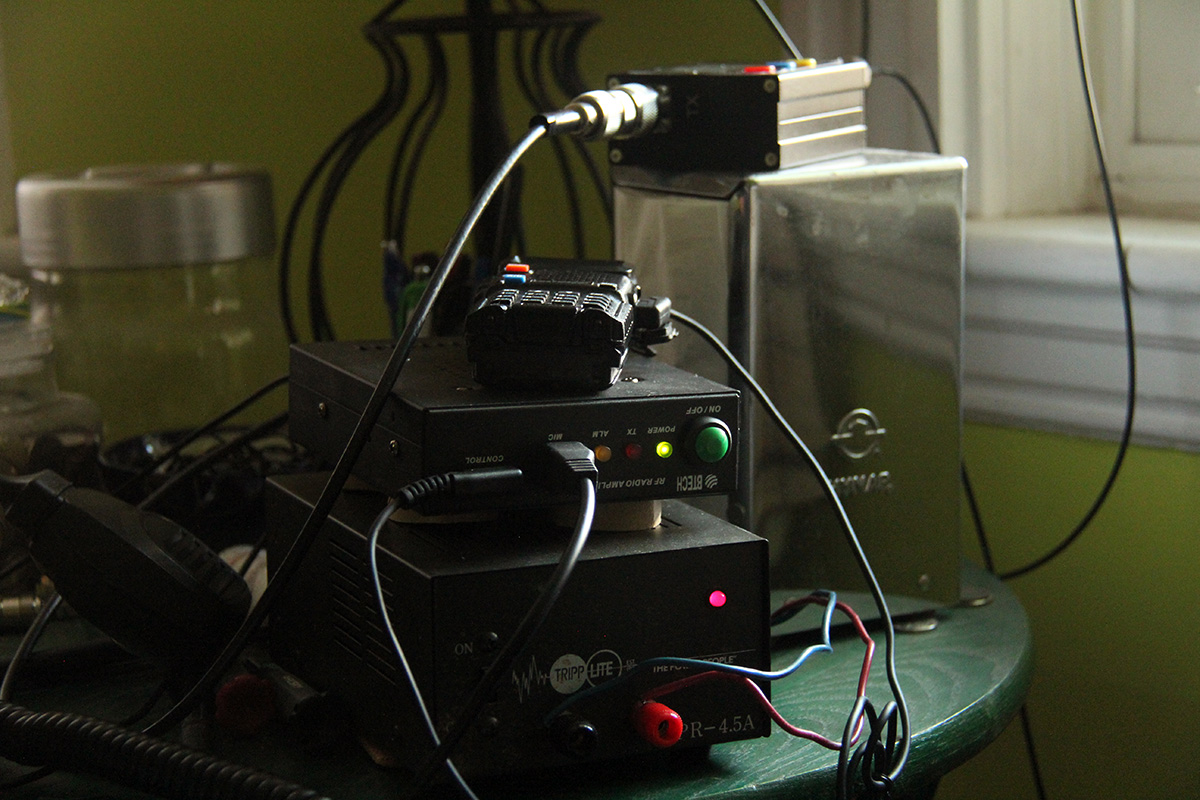 the baofeng amplifier arrived in the late morning. my father dropped by in the early afternoon to test it out from my house. the btech (baofeng brand) AMP-V25 VHF (136-174MHz) amplifier ($88) has a very simple function: it takes the low 1-5W power output from a baofeng handheld transceiver (HT) and amplifies it to 20-40W (label says 25-30W). the increased power can provide a longer reach for the typically limited baofeng HT. it worked, using the hanging DBJ-2 antenna, transmitting as high as 30.6W. tranmissions through the cafe simplex repeater sound louder, clearer, with less static. although it can also be configured in a few different ways, it's a one trick pony in that it can only amplify on the 2m band; for the 70cm we'd need to buy a different amplifier. my father picked this one because 2m is the band that works best for what we're doing. he left behind the amplifier (along with the SWR meter) and took back the QYT radio.