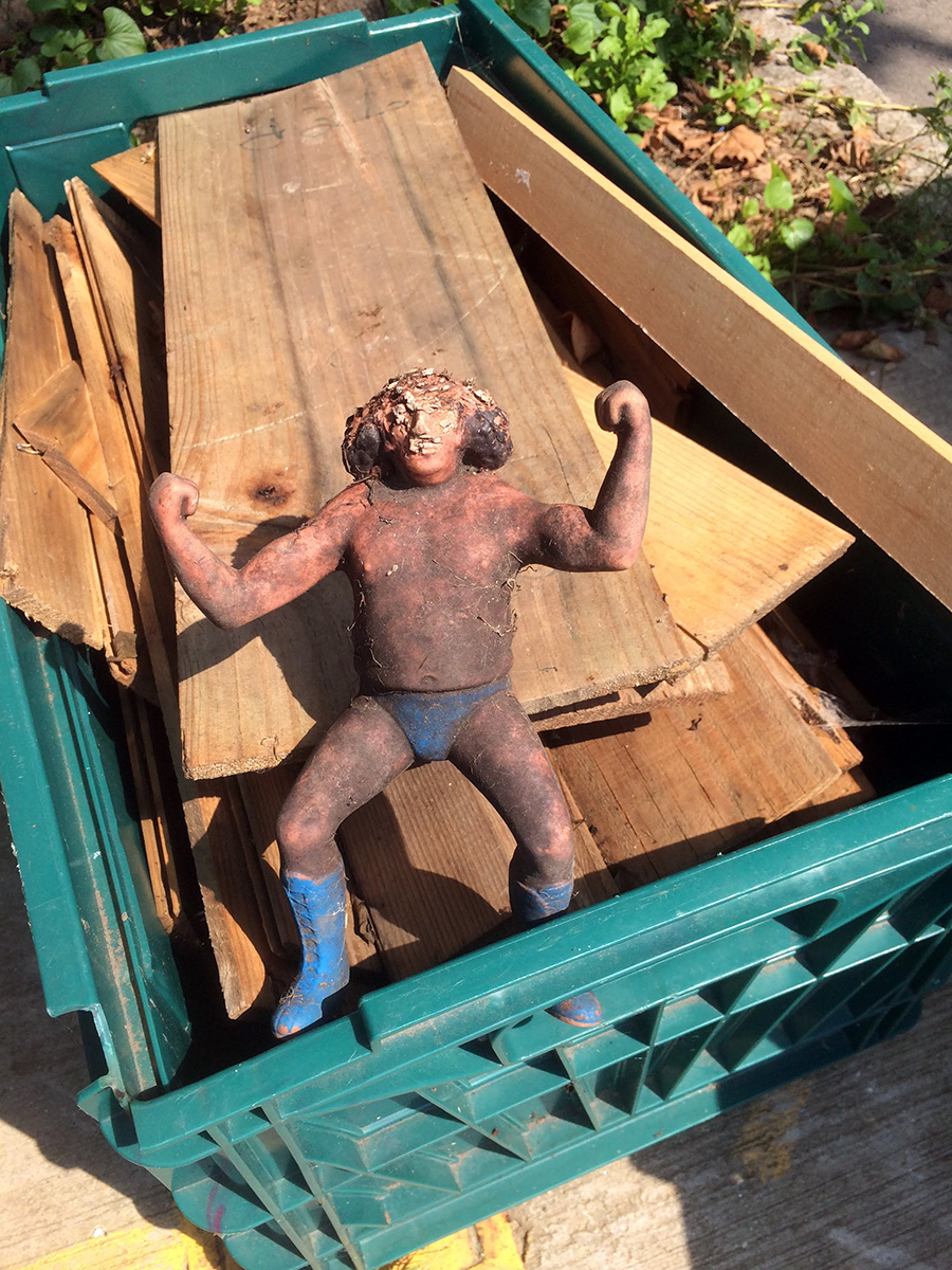 along the way i saw a figure tossed out with some trash. intrigued, i stopped to check it out. it was a rubber doll, less than a foot tall. the head at deteriorated such that it was partially gone. yet for some reason i could still recognize who it was: the wrestling pose and outlet, the remnants of an afro, all suggested this was none other than andre the giant. when i got home i confirmed my suspicion when i did a google search of "andre giant toy" and came up with some matching results. manufactured by LJN for the WWE , this 1984 toy also came in another variant where andre had shorter hair. i was never much of a wrestling fan growing up, but i must've been exposed to enough of it in the background that decades later i can still recognize the giant when i see him.